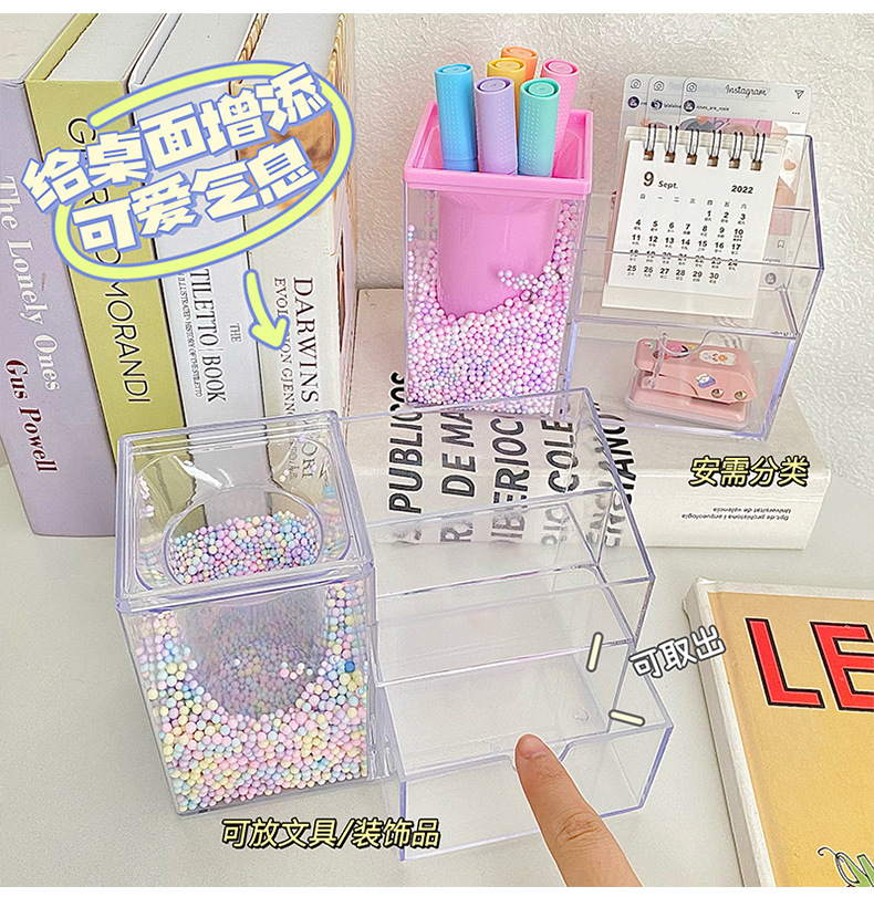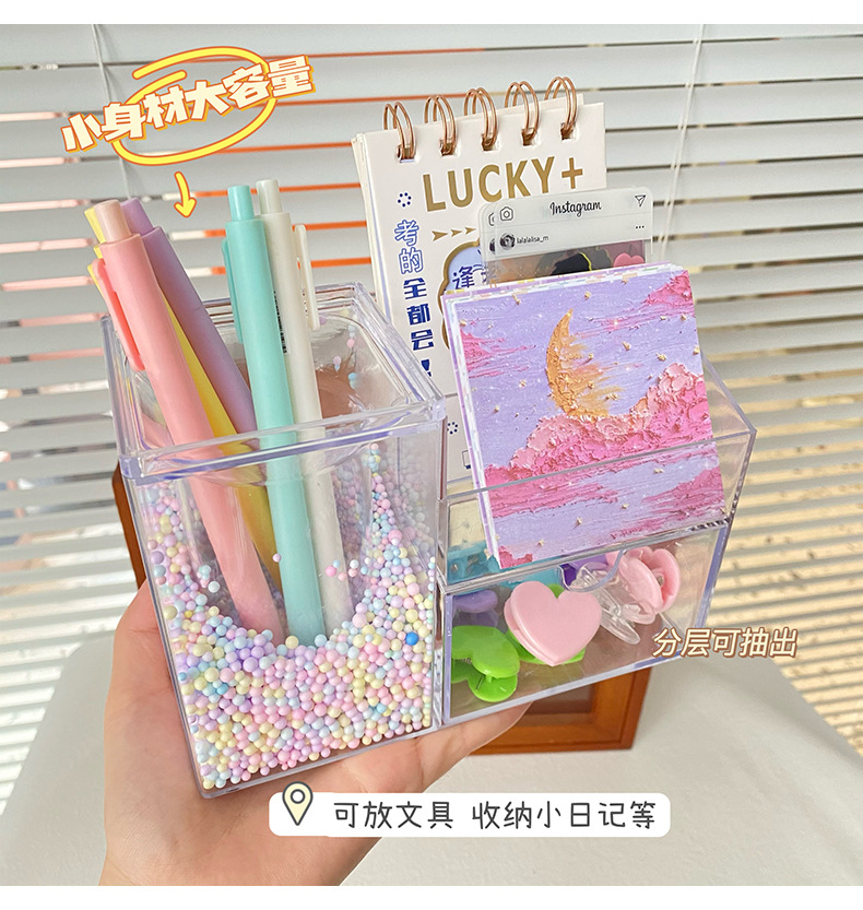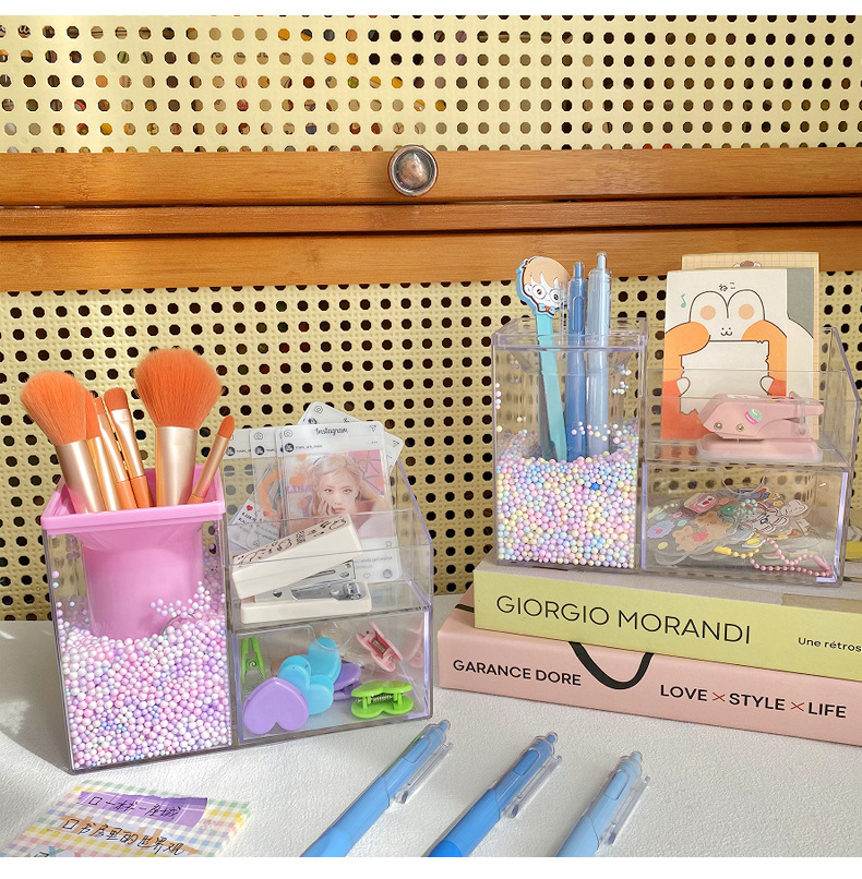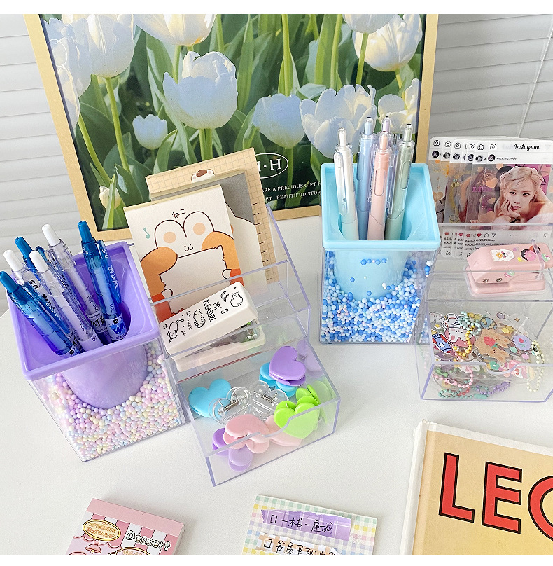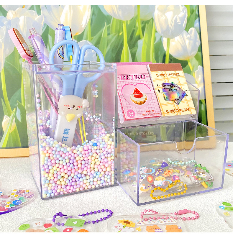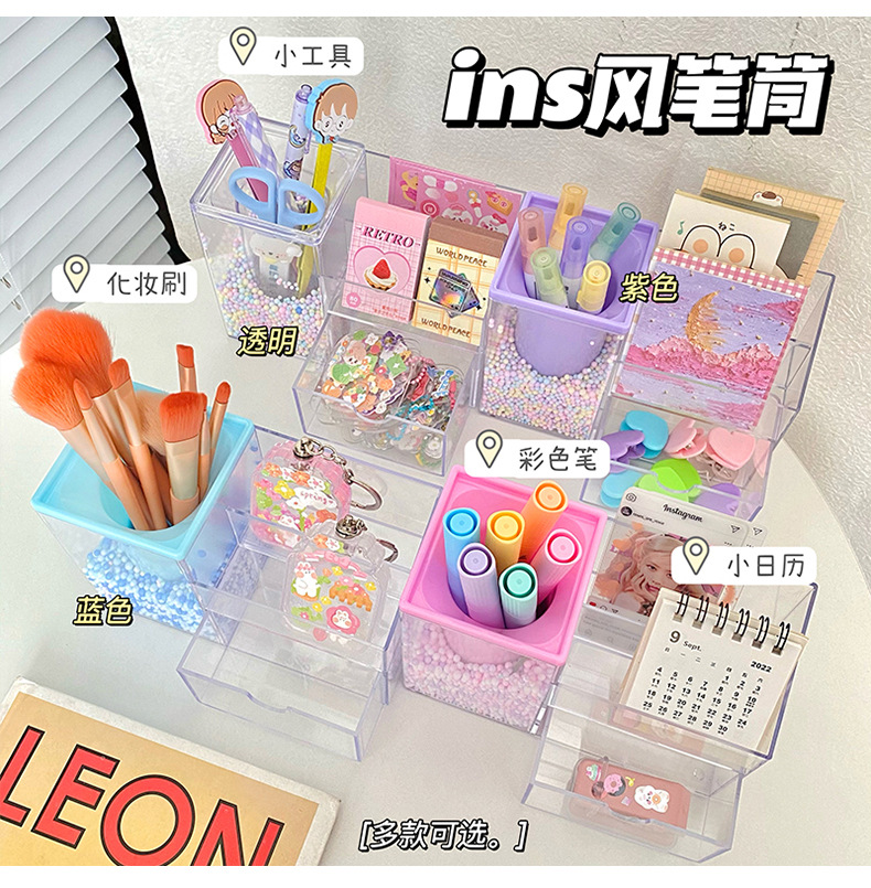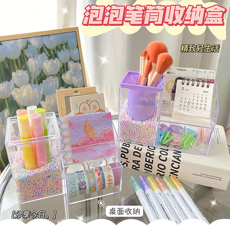 크리 에이 티브 아크릴 폼 펜 홀더 학생 문구 데스크탑 대용량 펜 홀더 화장품 보관 상자스토어 가기