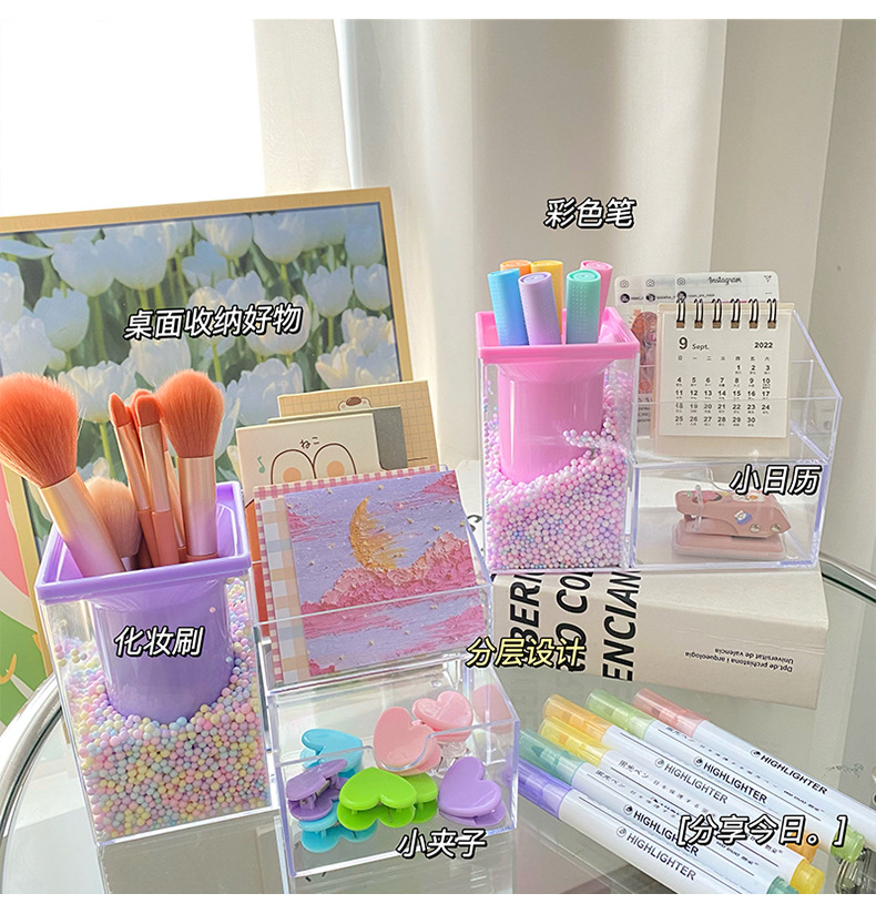 크리 에이 티브 아크릴 폼 펜 홀더 학생 문구 데스크탑 대용량 펜 홀더 화장품 보관 상자