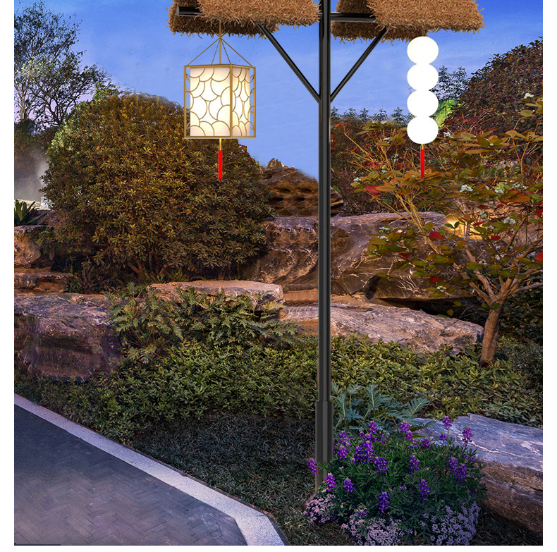 야외 초가 코티지 조명 높은 기둥 조명 태양 풍경 조명 홈스테이 명승 명소 공원 가로등 문화 관광 장식 조명