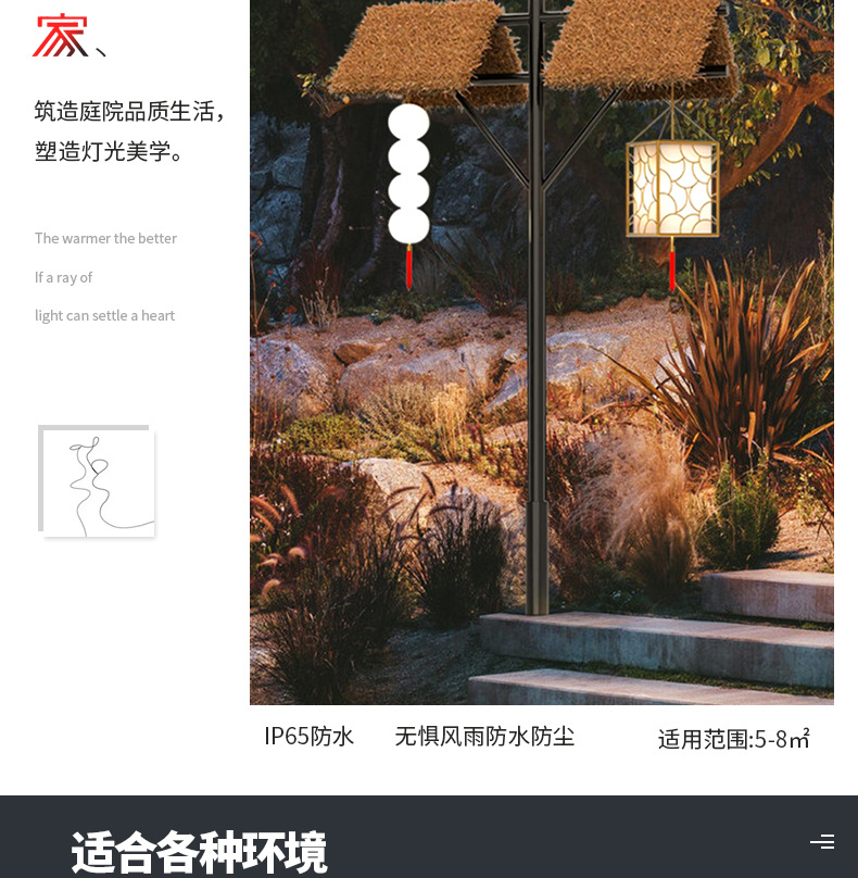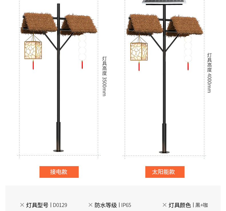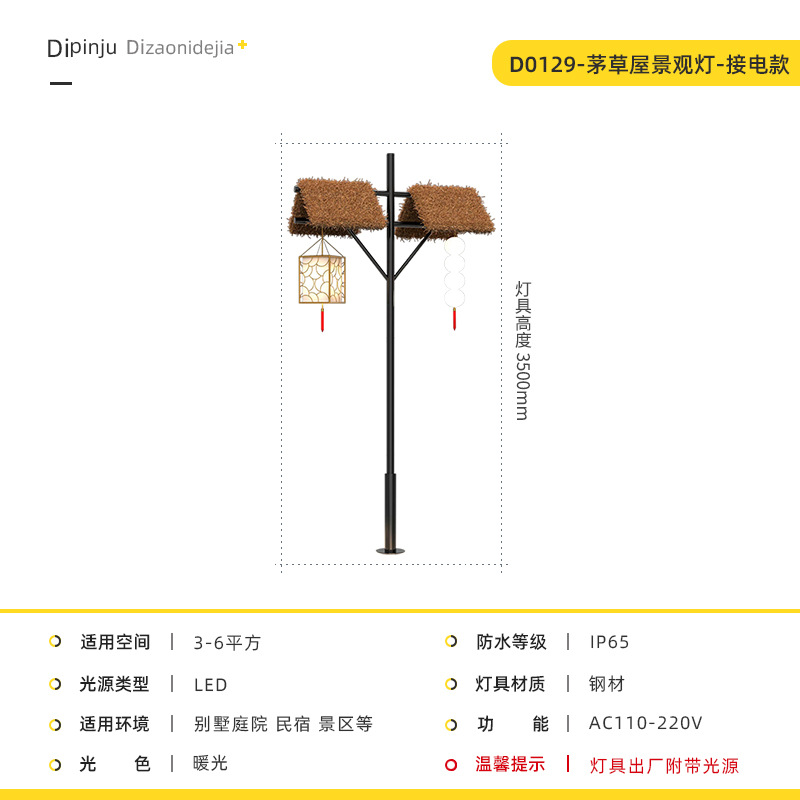 야외 초가 코티지 조명 높은 기둥 조명 태양 풍경 조명 홈스테이 명승 명소 공원 가로등 문화 관광 장식 조명스토어 가기