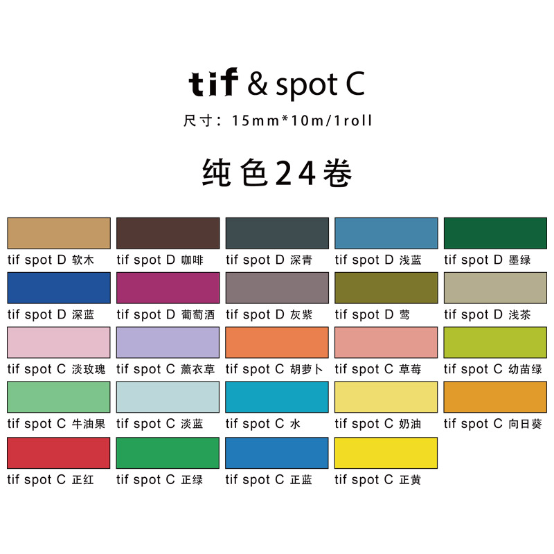 단색 일반 컬러 tif 및 종이 테이프 기본 핸드 계정 재료 DIY 장식 스티커 핸드 계정 필름 24 롤 크로스 보더