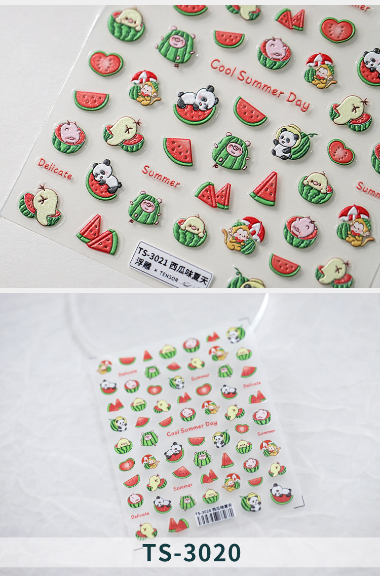 새로운 기술 텐서 얇은 터프 네일 스티커 프로 젖빛 스테레오 접착 네일 스티커 TS-3020 수박 맛 여름스토어 가기