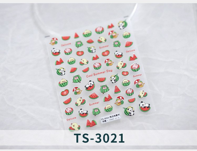 새로운 기술 텐서 얇은 터프 네일 스티커 프로 젖빛 스테레오 접착 네일 스티커 TS-3020 수박 맛 여름