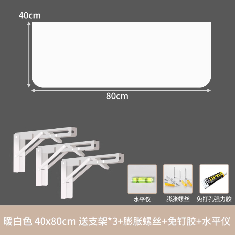 • 흰색 40X120CM [무료 네일프리 접착제 + 접이식 브래킷 3개 + 확장 나사 + 레벨]