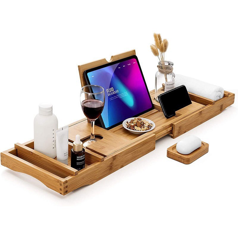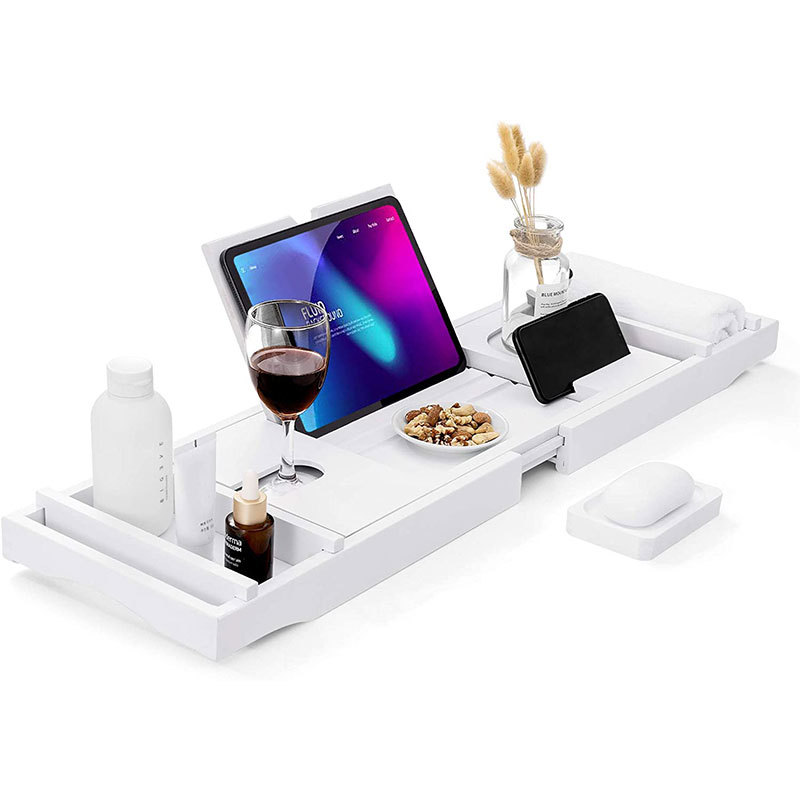 재고 대나무 욕실 랙 개폐식 미끄럼 방지 목욕 랙 독서 랙 욕조 홀더 욕조 트레이 사용자 정의스토어 가기