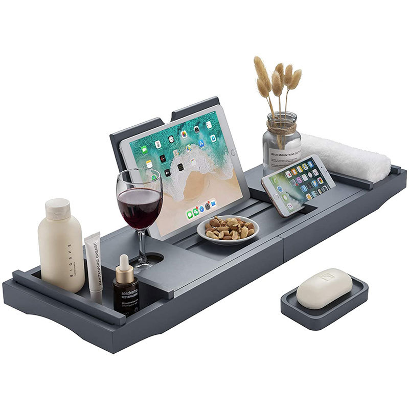 재고 대나무 욕실 랙 개폐식 미끄럼 방지 목욕 랙 독서 랙 욕조 홀더 욕조 트레이 사용자 정의