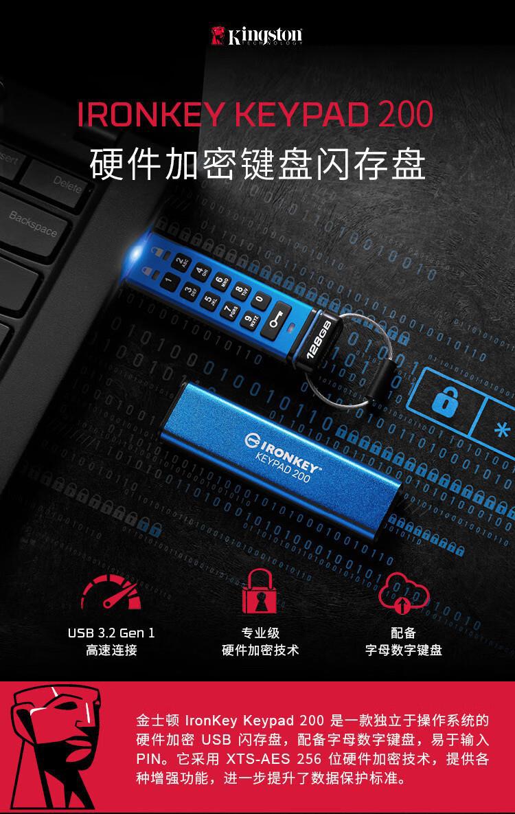 USB 킹스턴 IKKP200 16G/32G/64G/128G USB 디스크 256 비트 AES 암호화스토어 가기