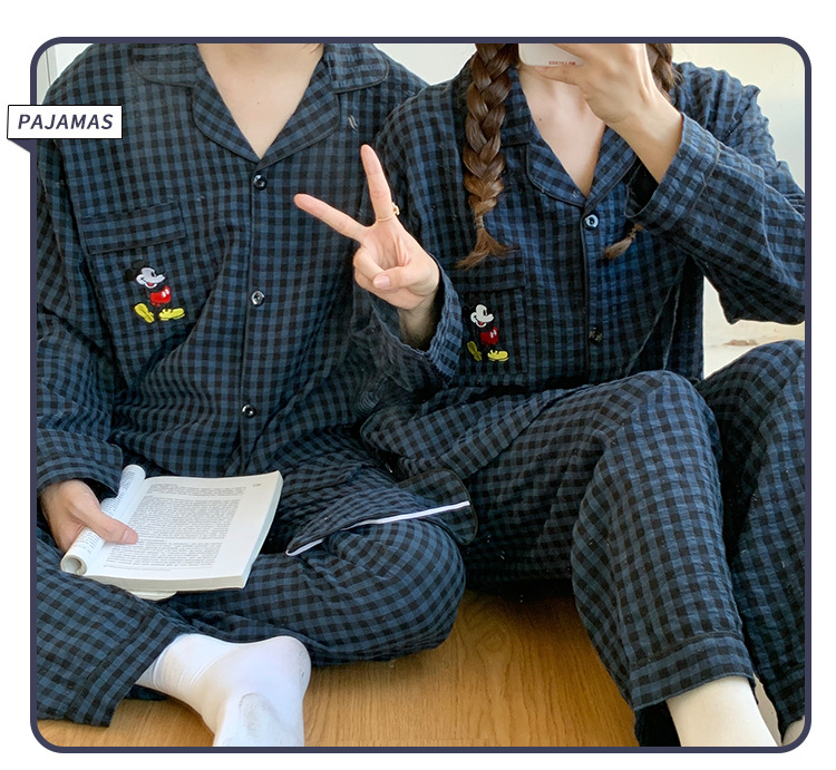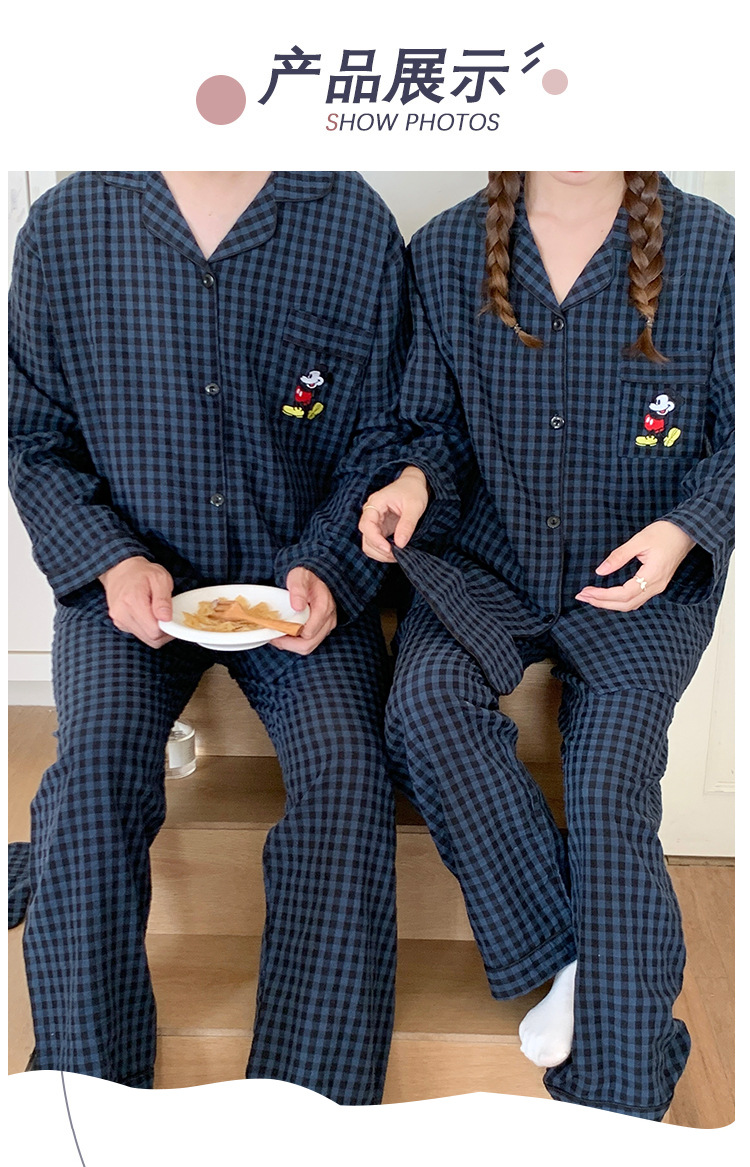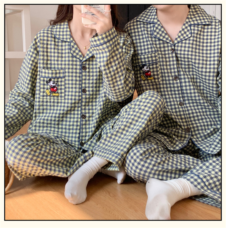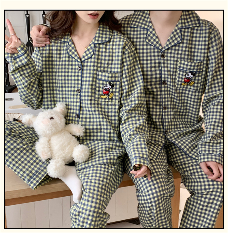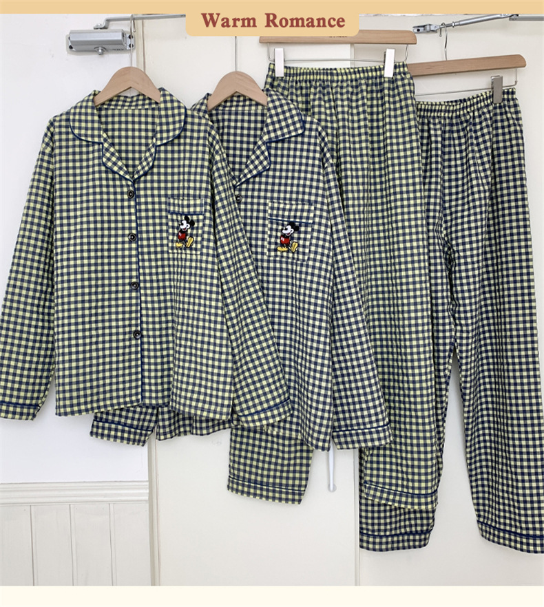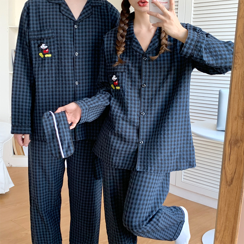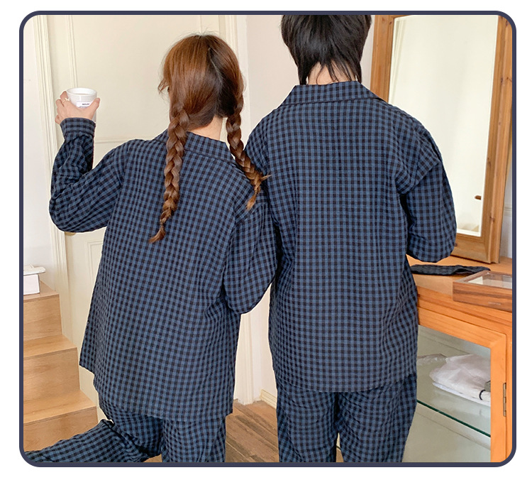 2023 새로운 가을과 겨울 면 격자 무늬 커플 잠옷 여자의 가을 커플 느슨한 편안한 가정 옷 세트