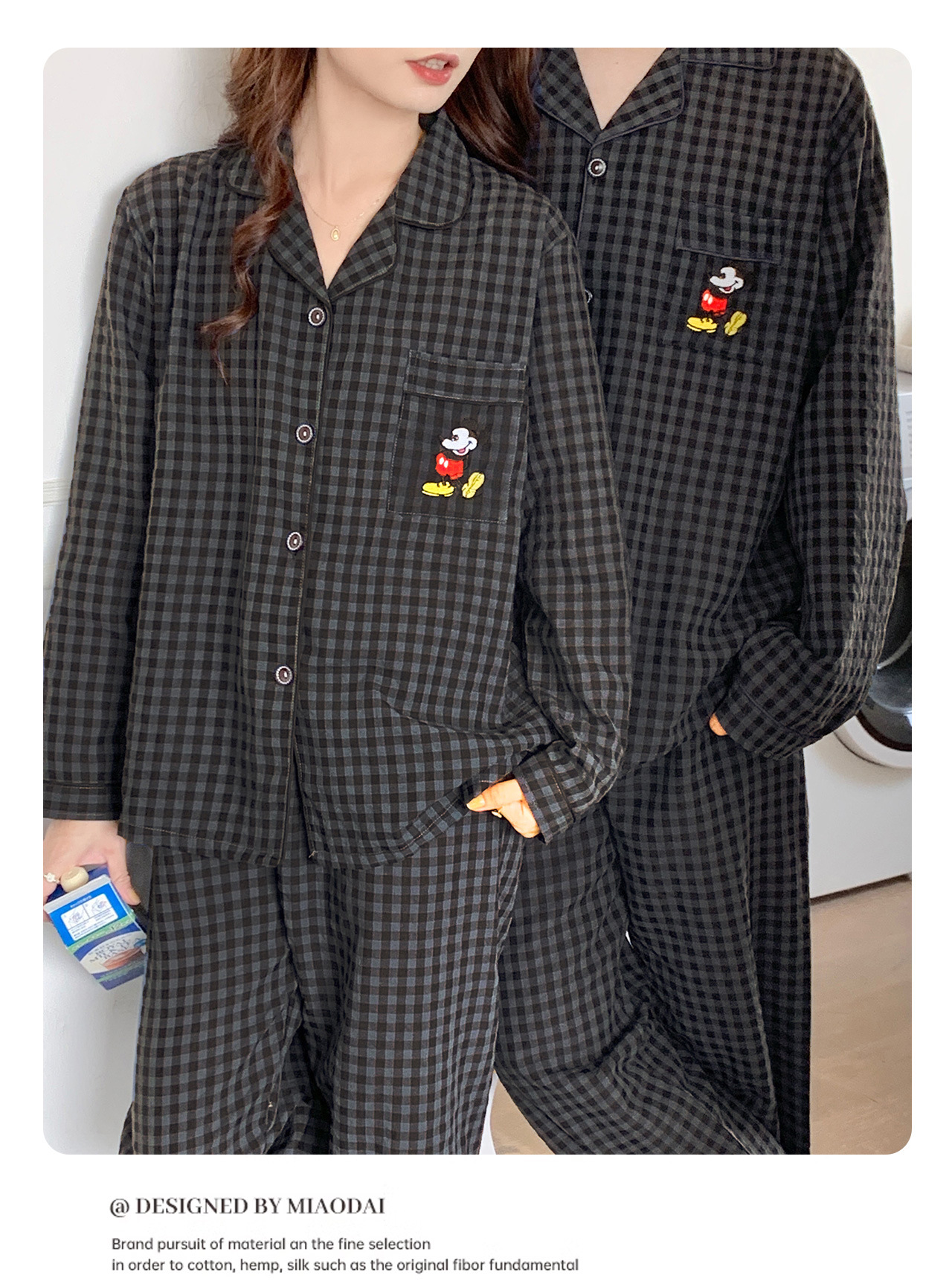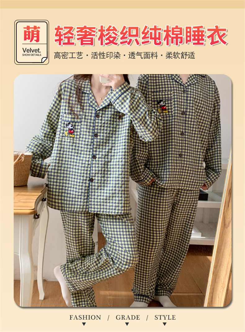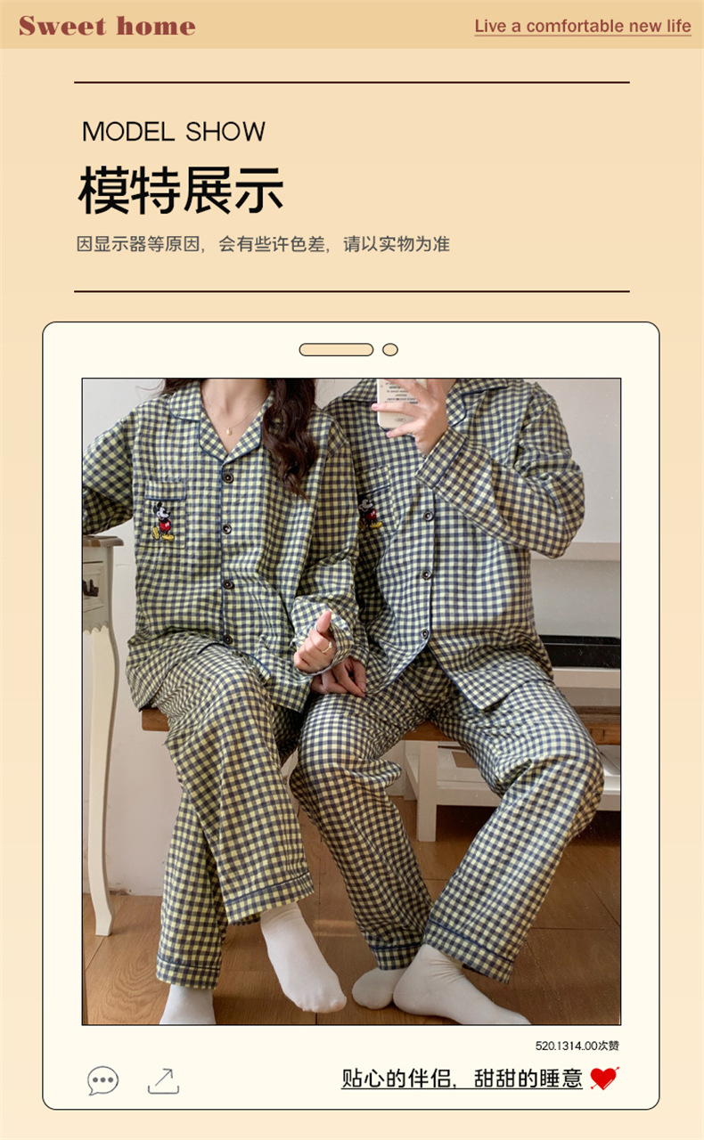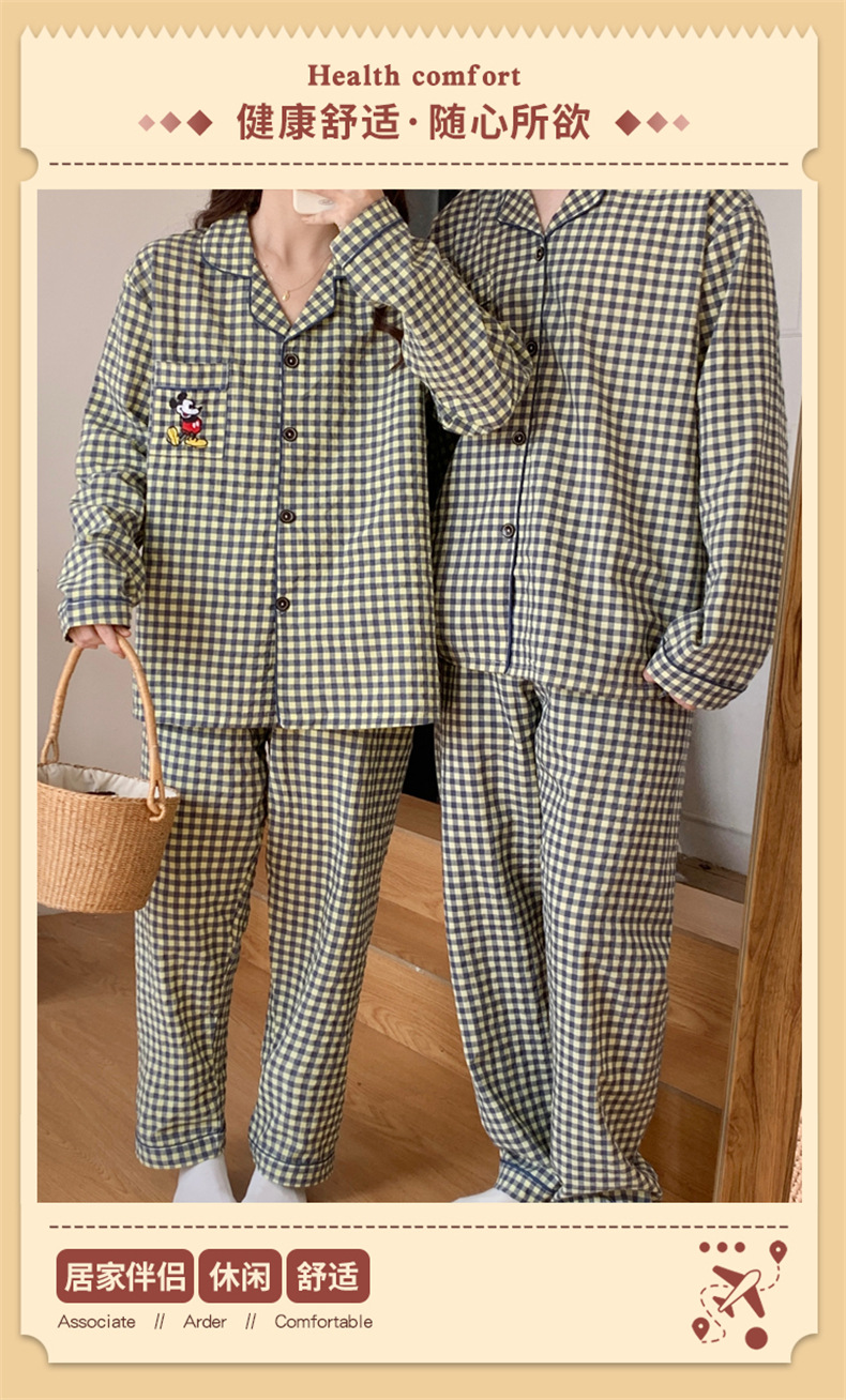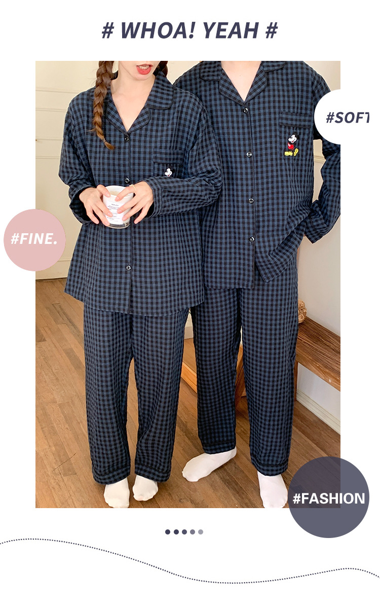 2023 새로운 가을과 겨울 면 격자 무늬 커플 잠옷 여자의 가을 커플 느슨한 편안한 가정 옷 세트