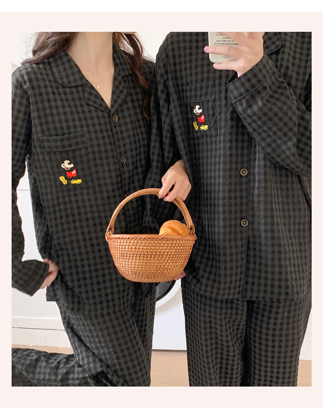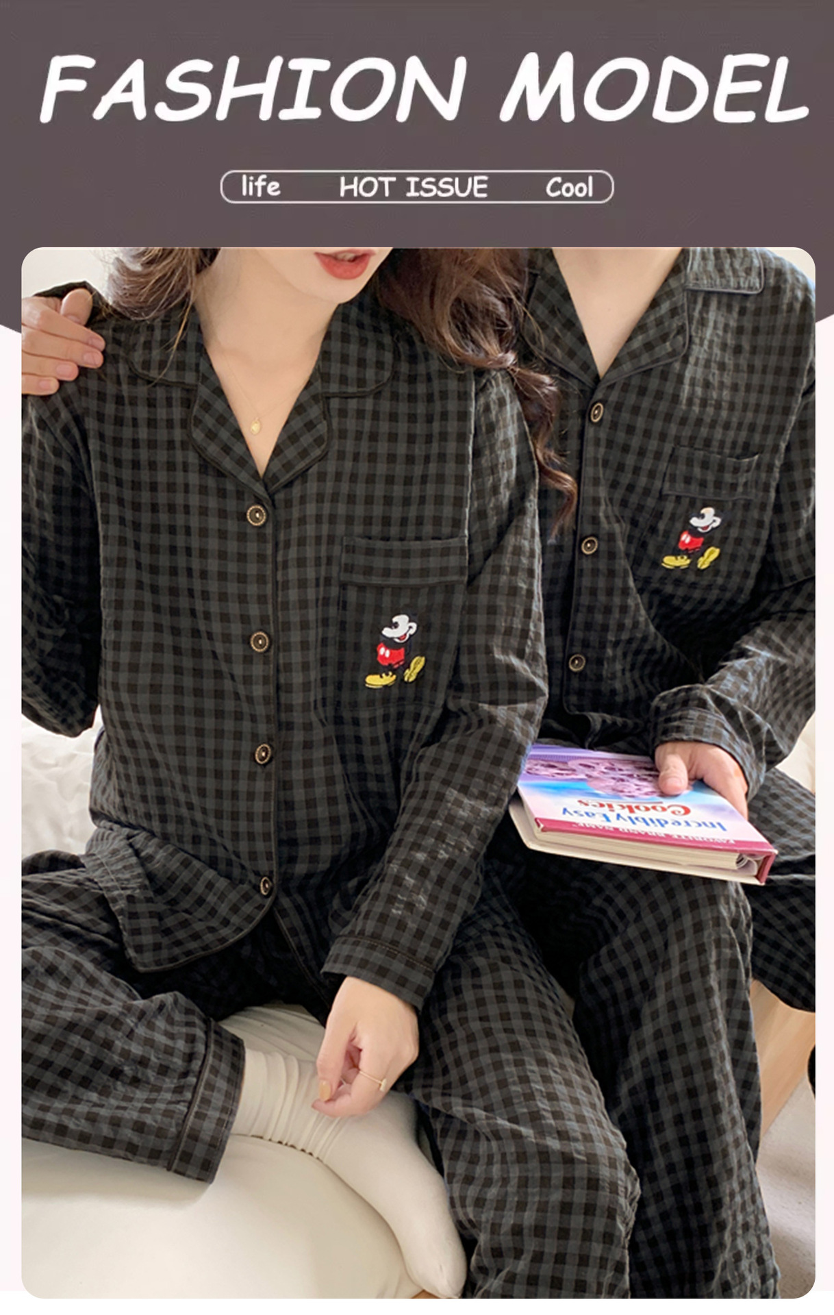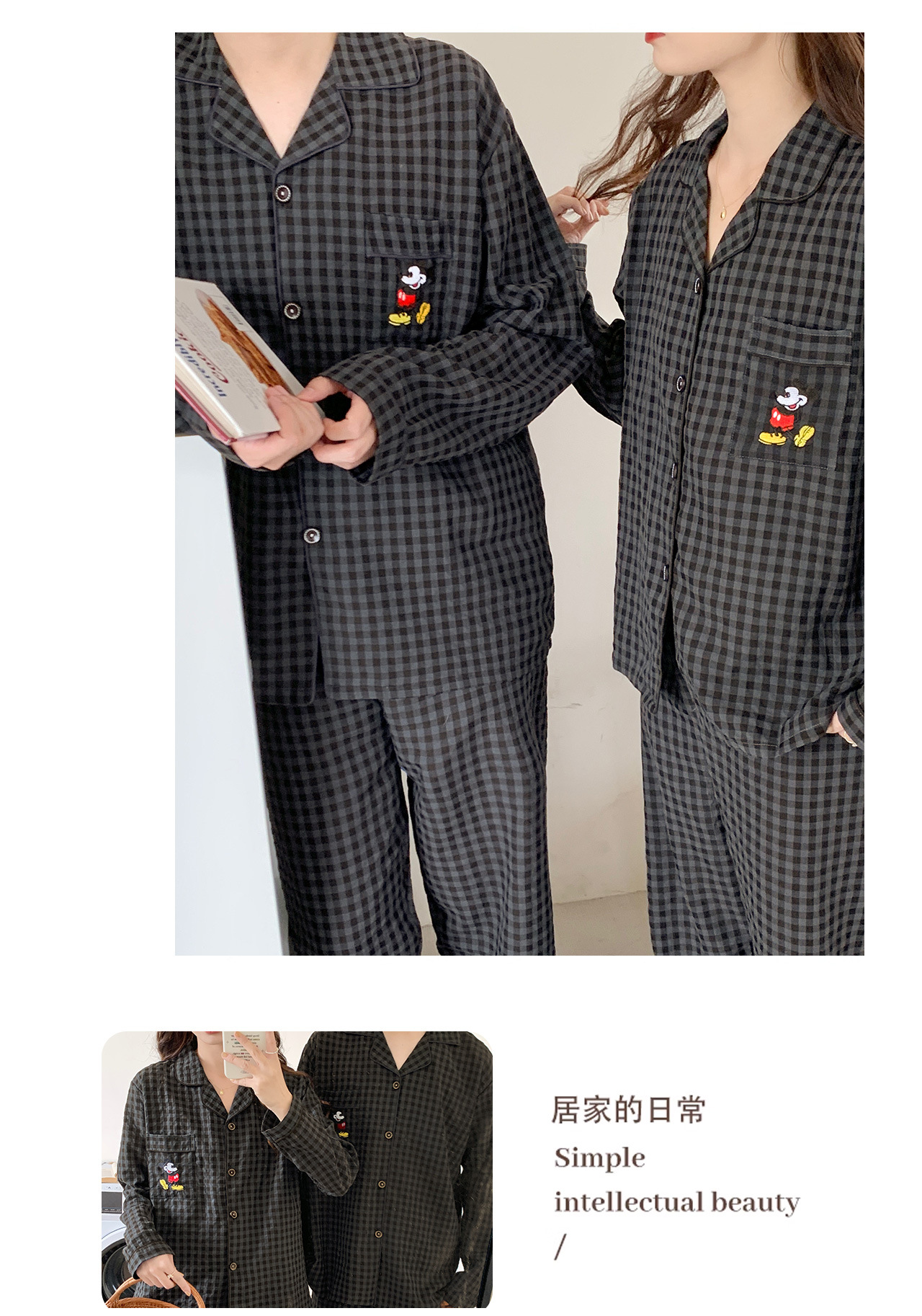 2023 새로운 가을과 겨울 면 격자 무늬 커플 잠옷 여자의 가을 커플 느슨한 편안한 가정 옷 세트스토어 가기