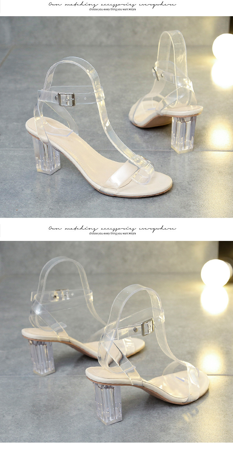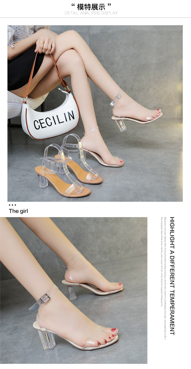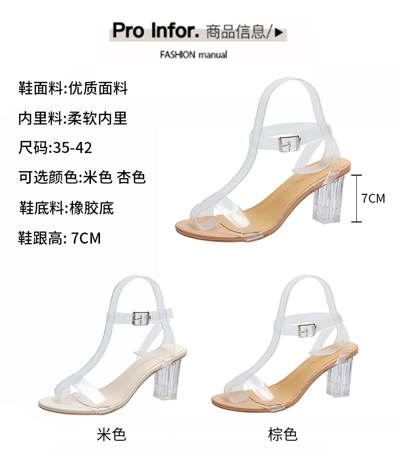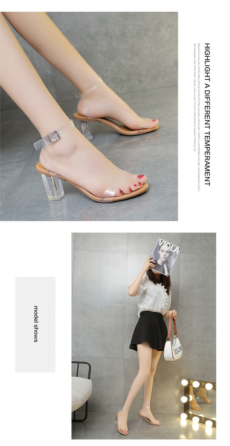 국경 대형 두꺼운 뒤꿈치 샌들 하이힐 2023 크리스탈 벨트 버클 패션 샌들과 새로운 요정 스타일 한 단어스토어 가기