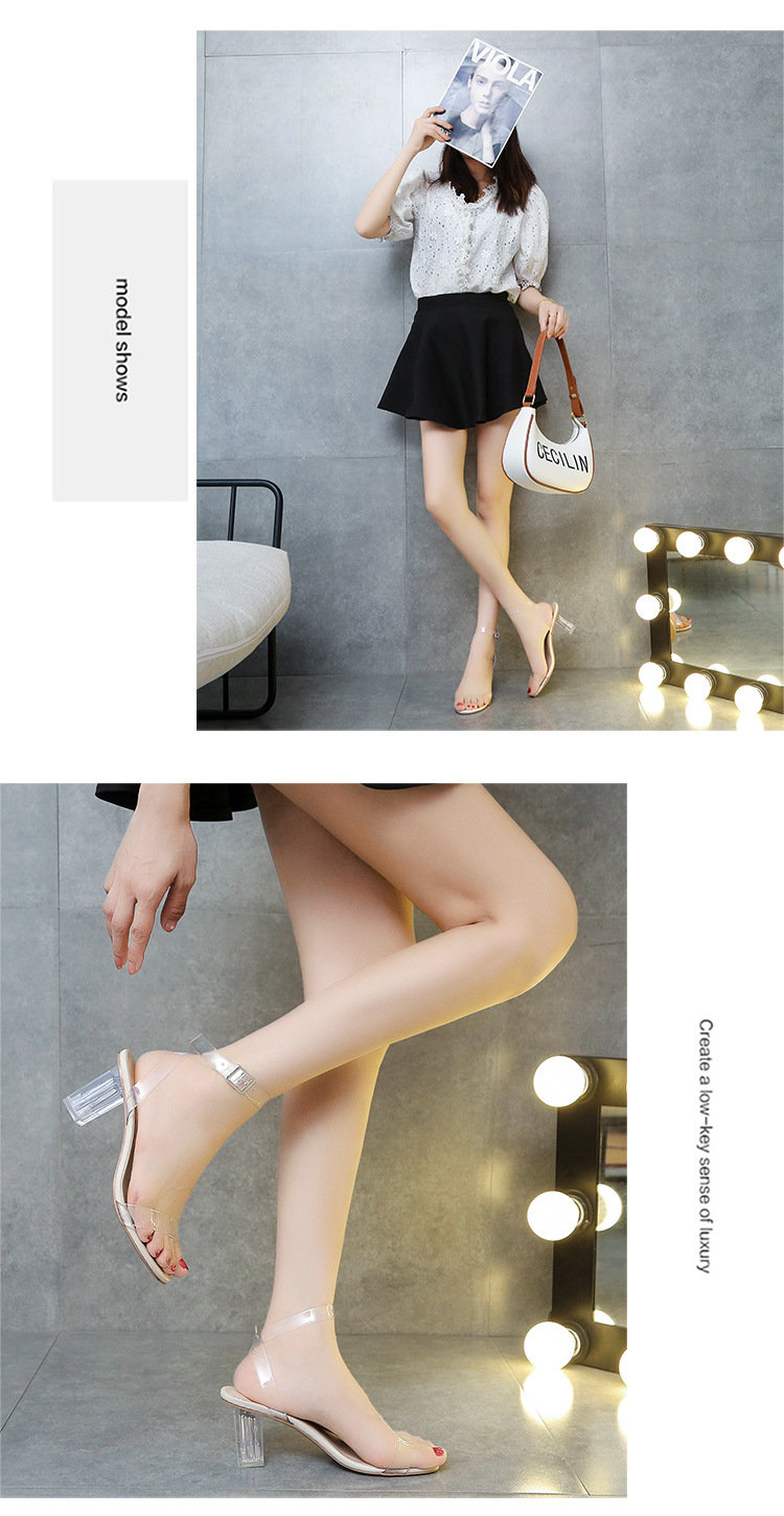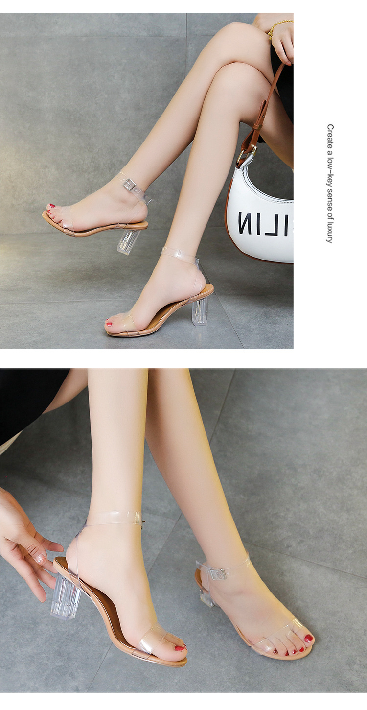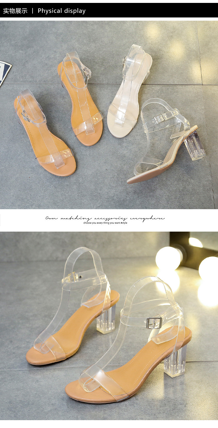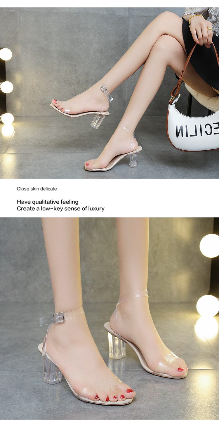 국경 대형 두꺼운 뒤꿈치 샌들 하이힐 2023 크리스탈 벨트 버클 패션 샌들과 새로운 요정 스타일 한 단어스토어 가기