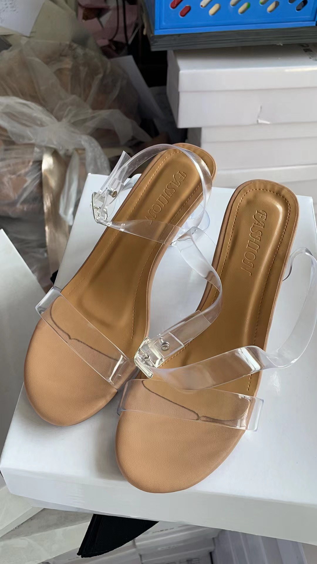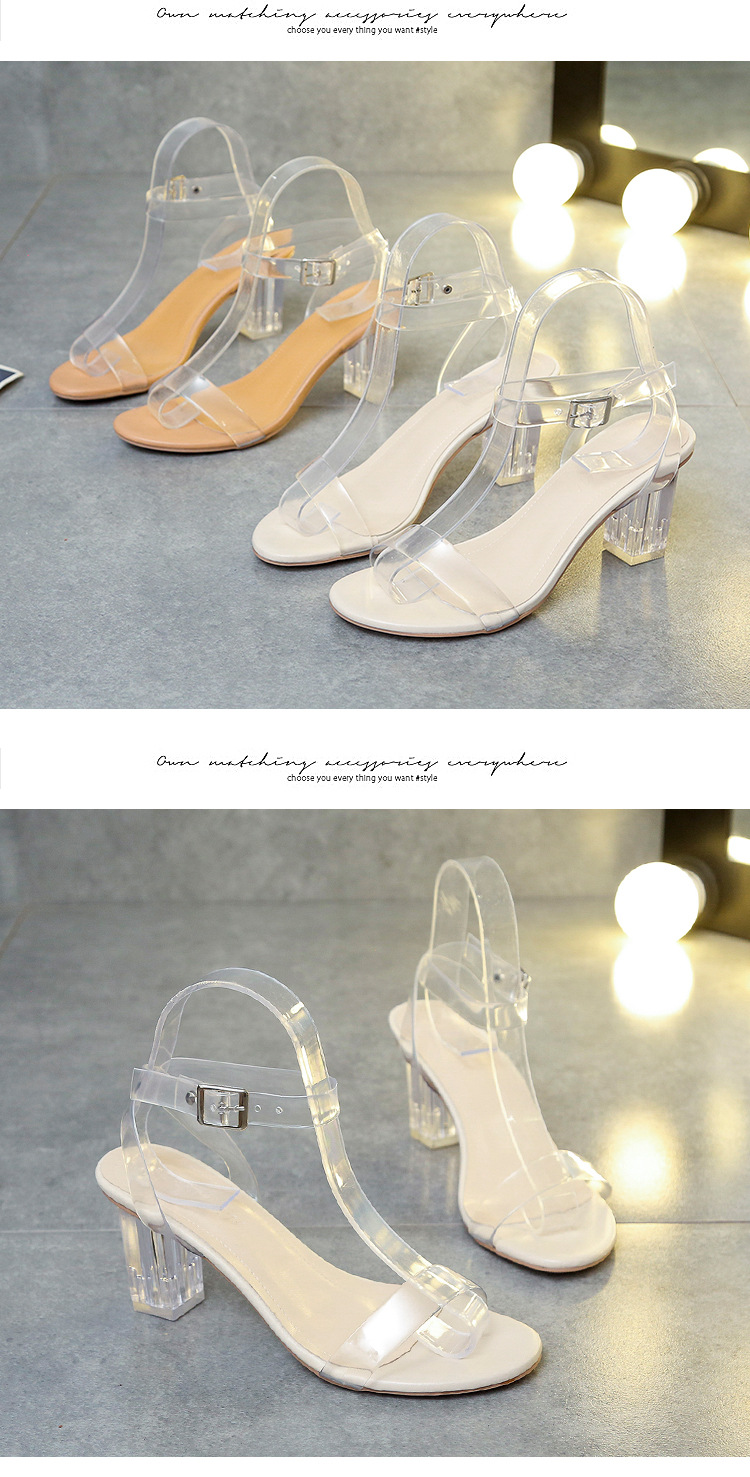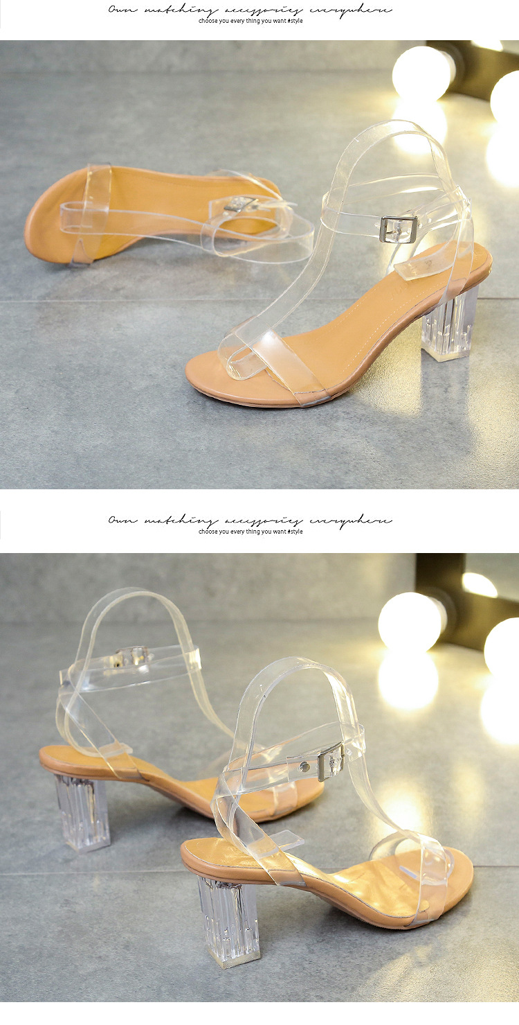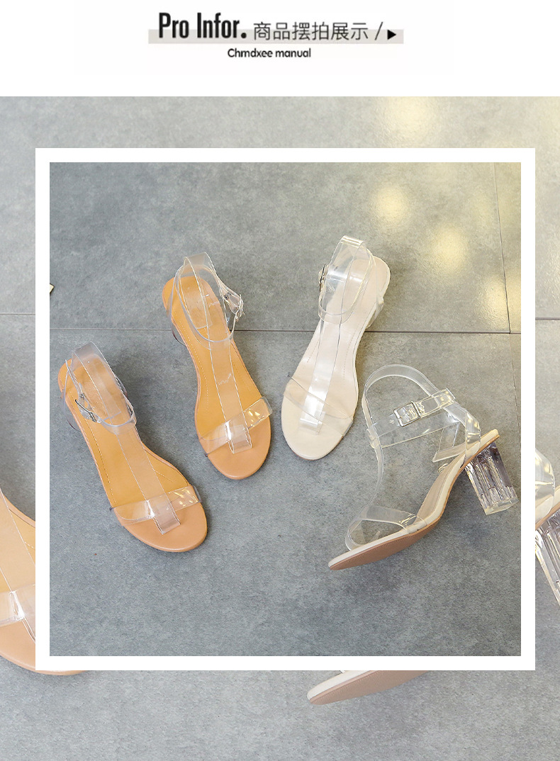국경 대형 두꺼운 뒤꿈치 샌들 하이힐 2023 크리스탈 벨트 버클 패션 샌들과 새로운 요정 스타일 한 단어스토어 가기