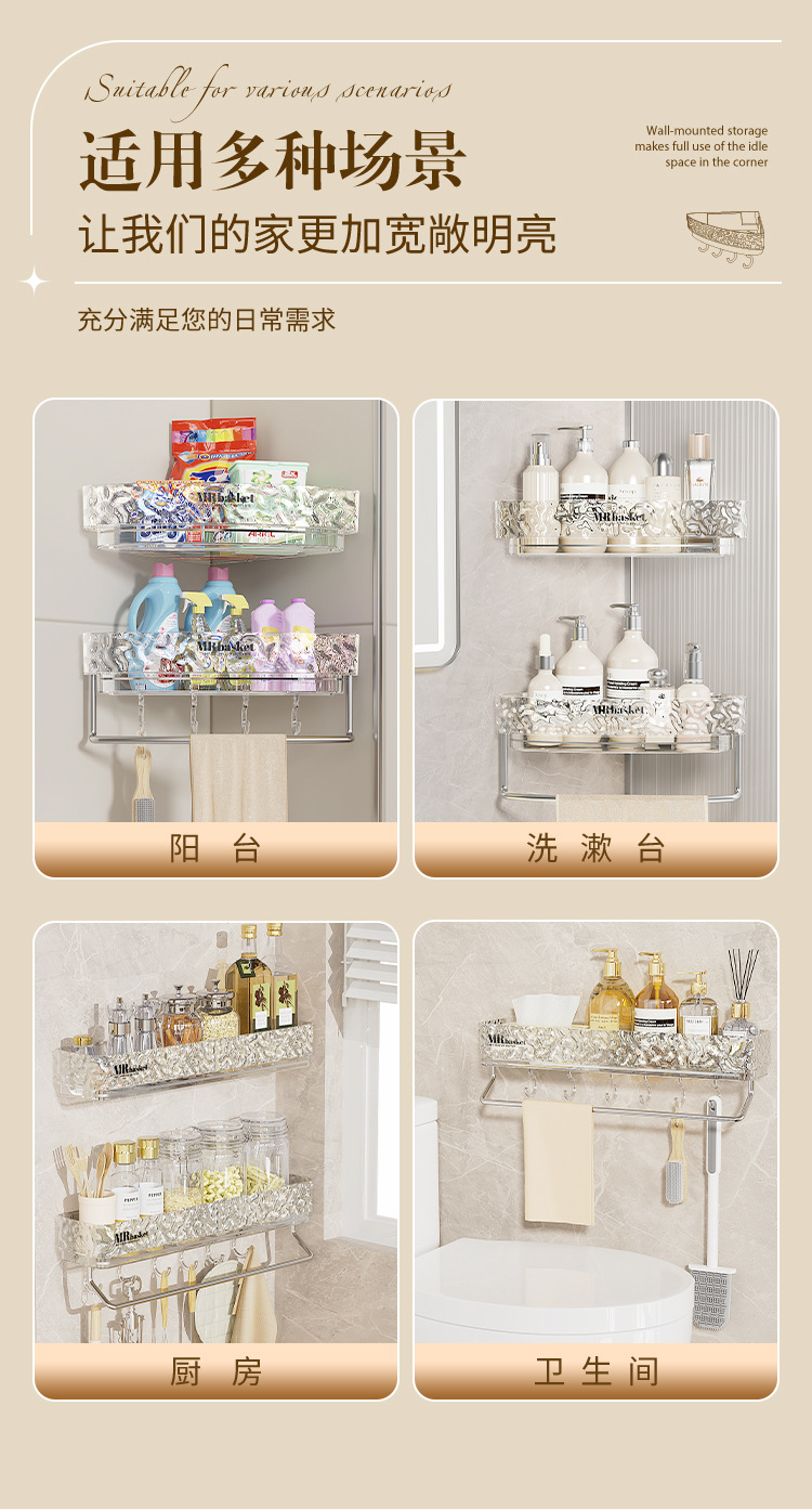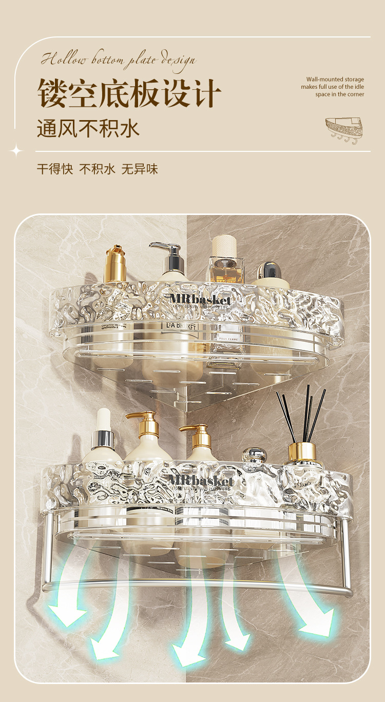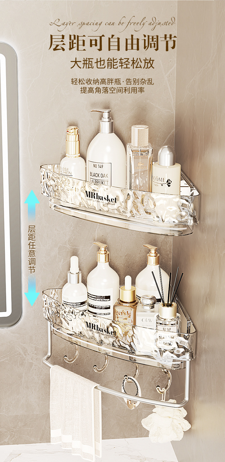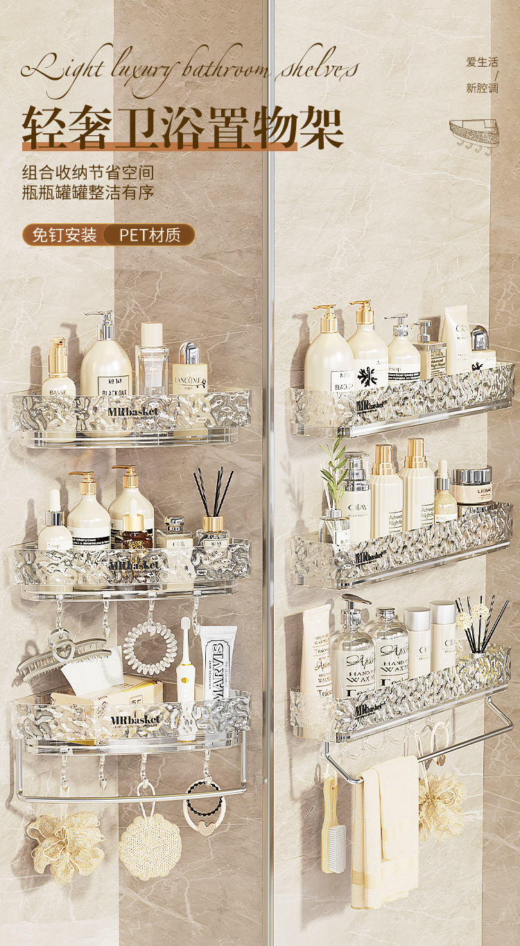 빙하 패턴 화장실 수납 랙 펀치 프리 화장실 벽 화장실 선반 가정용 벽걸이 형 욕실 수납 랙