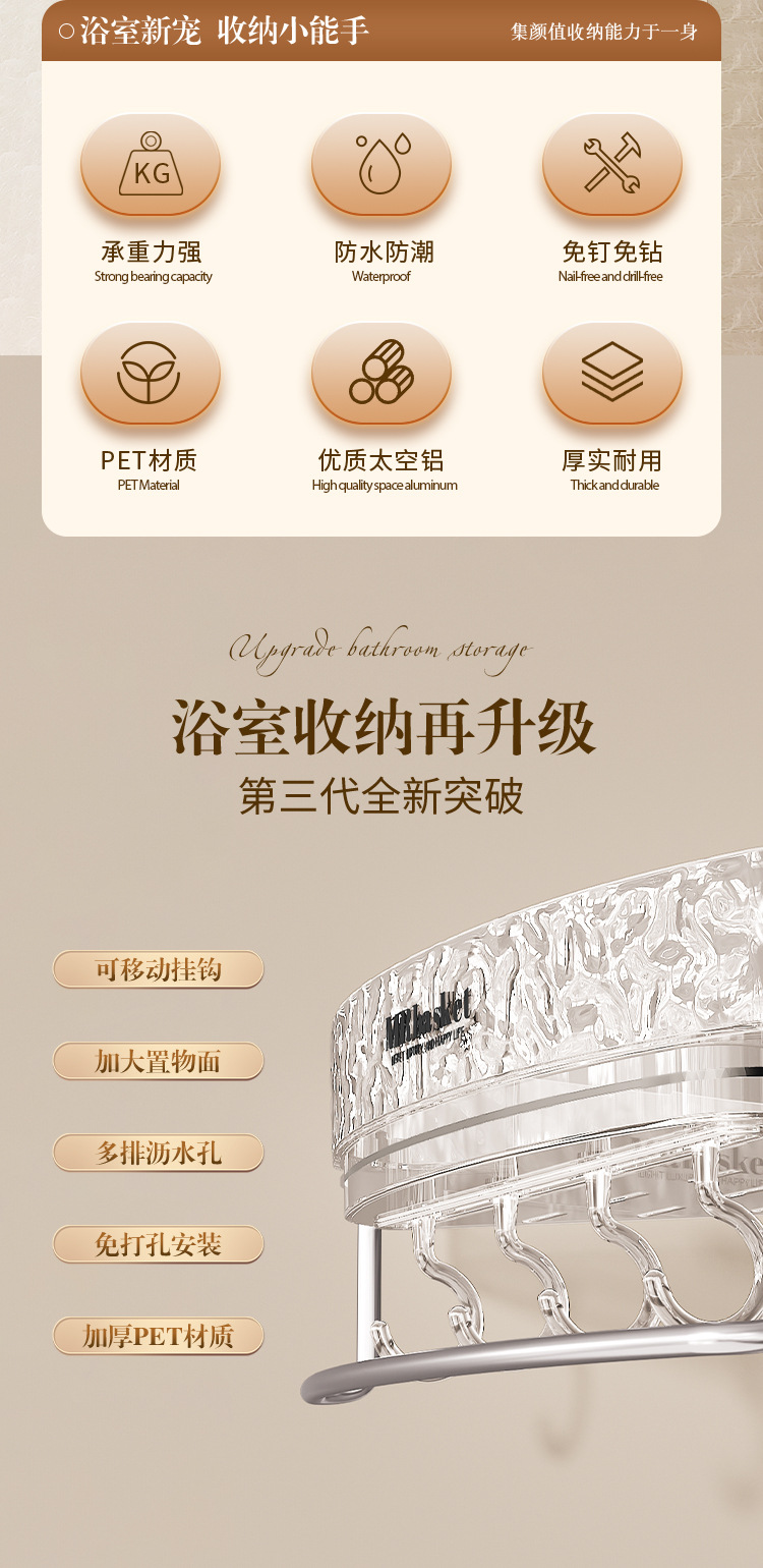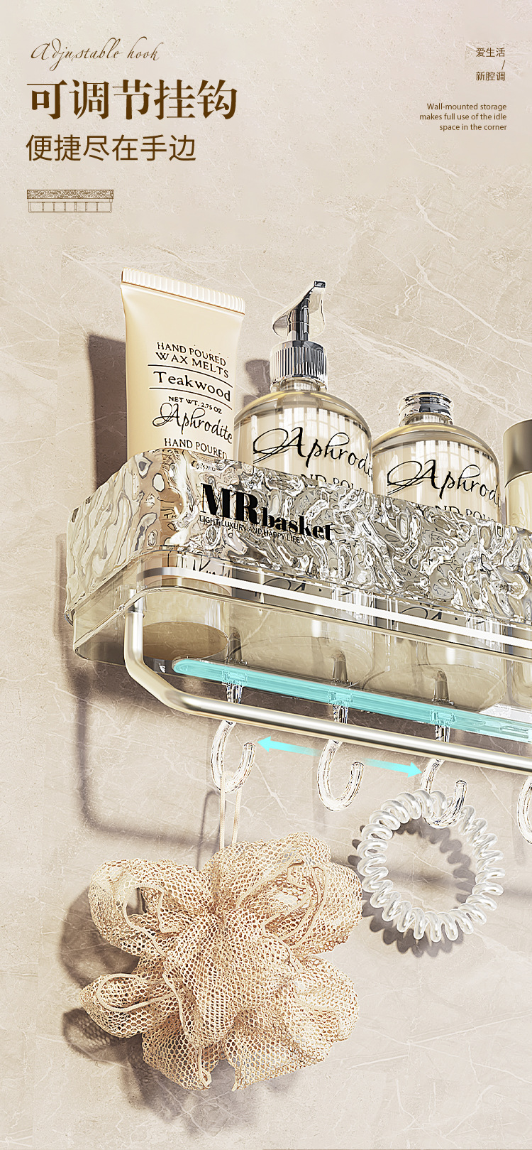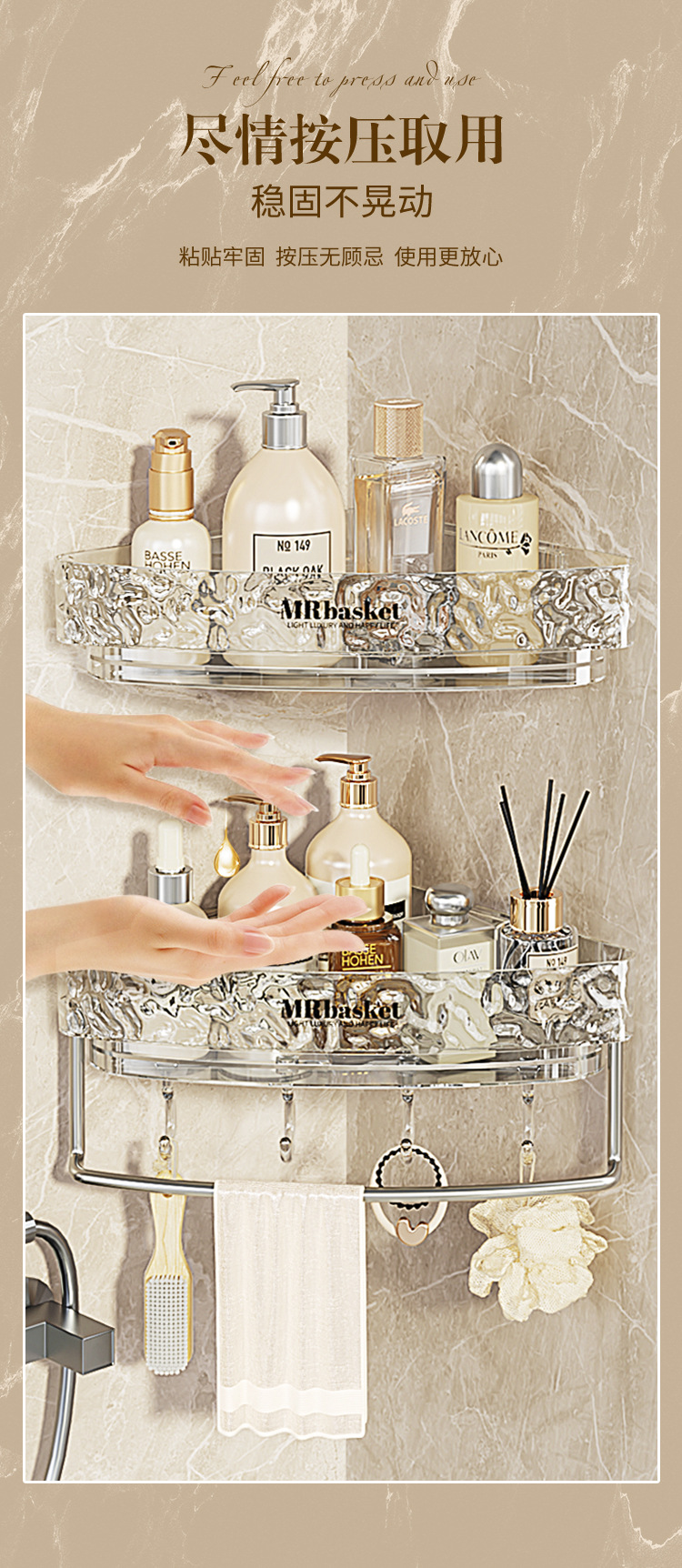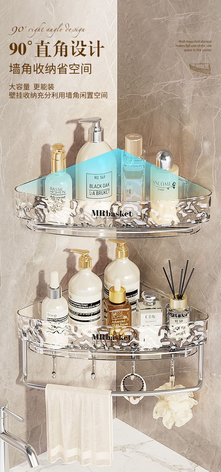 빙하 패턴 화장실 수납 랙 펀치 프리 화장실 벽 화장실 선반 가정용 벽걸이 형 욕실 수납 랙