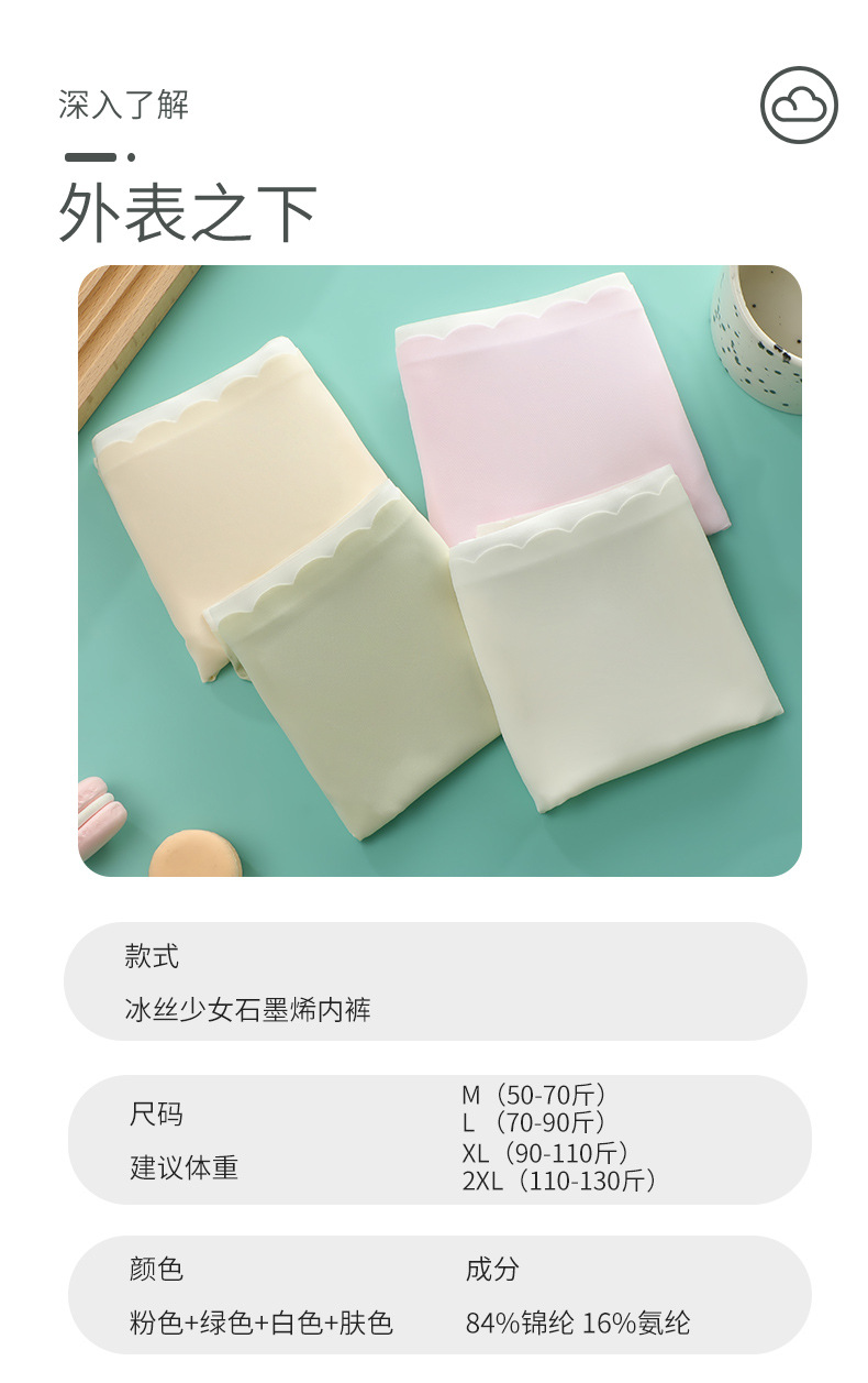 새로운 여아 속옷 팬티 Graphene 면 속옷 여성용 얇은 흔적이없는 미드 웨이스트 여아 반바지