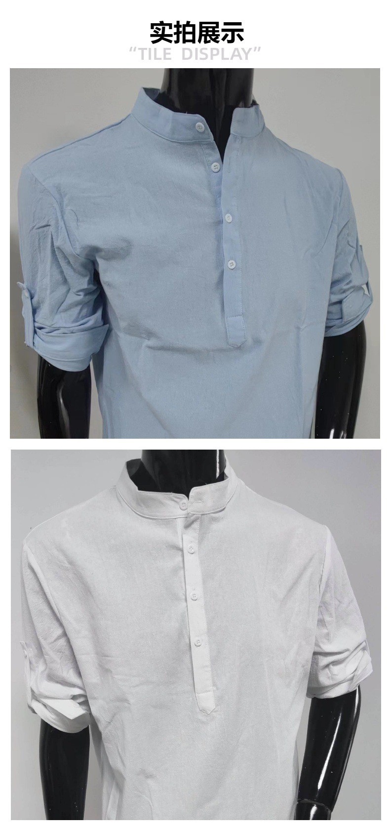 2025년 신상 남성용 루즈핏 스타일리시 스탠드 칼라 반팔 셔츠 단색 긴팔 순면 상의 대형 셔츠스토어 가기
