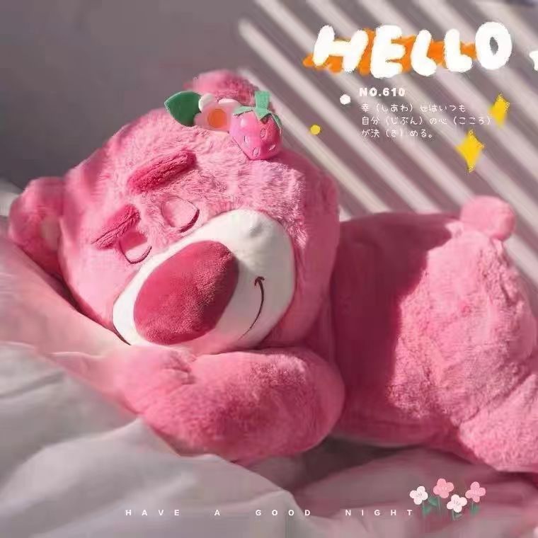 귀여운 재수없는 곰 거짓말 딸기 곰 인형 핑크 잠자는 베개 인형 봉제 장난감 여성을위한 생일 선물스토어 가기