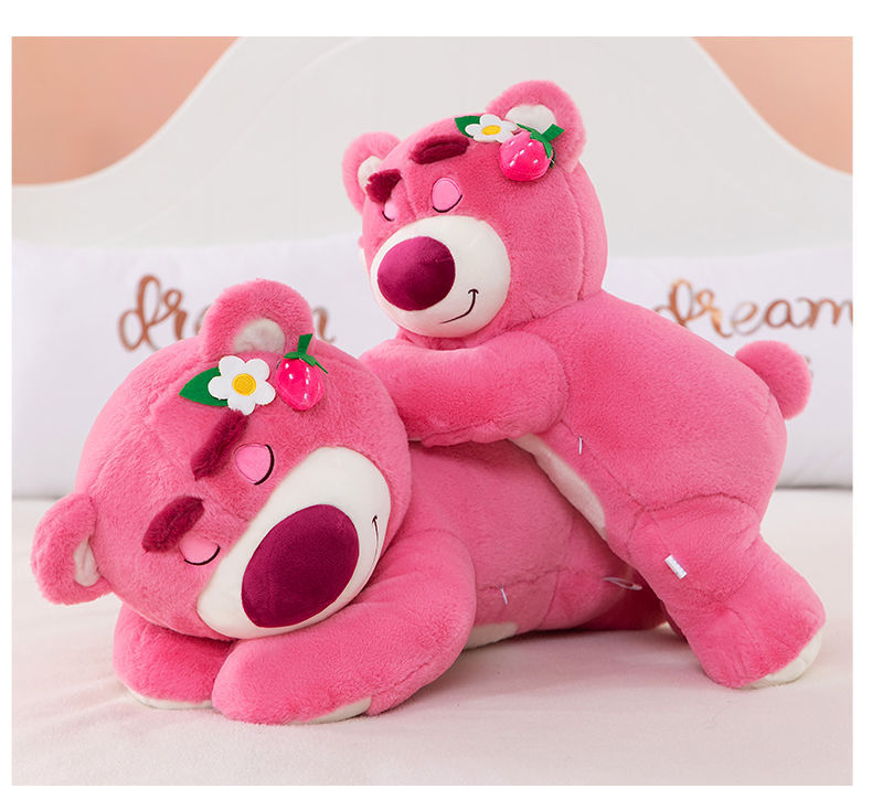 귀여운 재수없는 곰 거짓말 딸기 곰 인형 핑크 잠자는 베개 인형 봉제 장난감 여성을위한 생일 선물