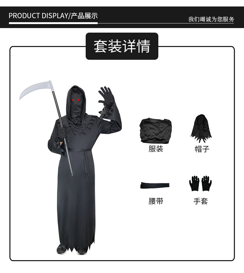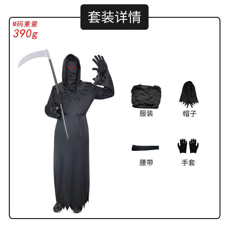 어린이 미스터리 공포 죽음 원피스 할로윈 놀이 의상 멋진 빨간 눈 낫
