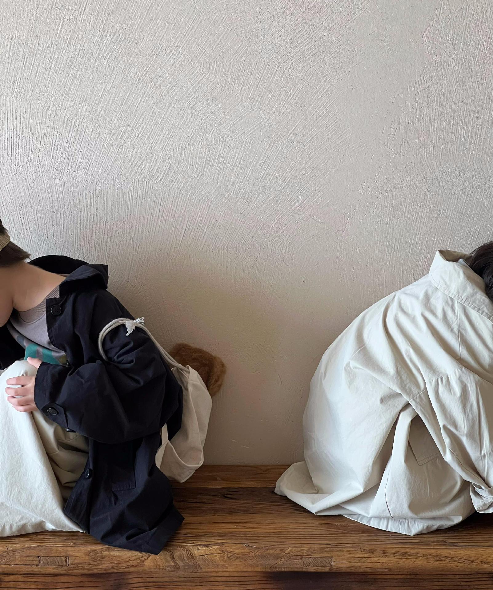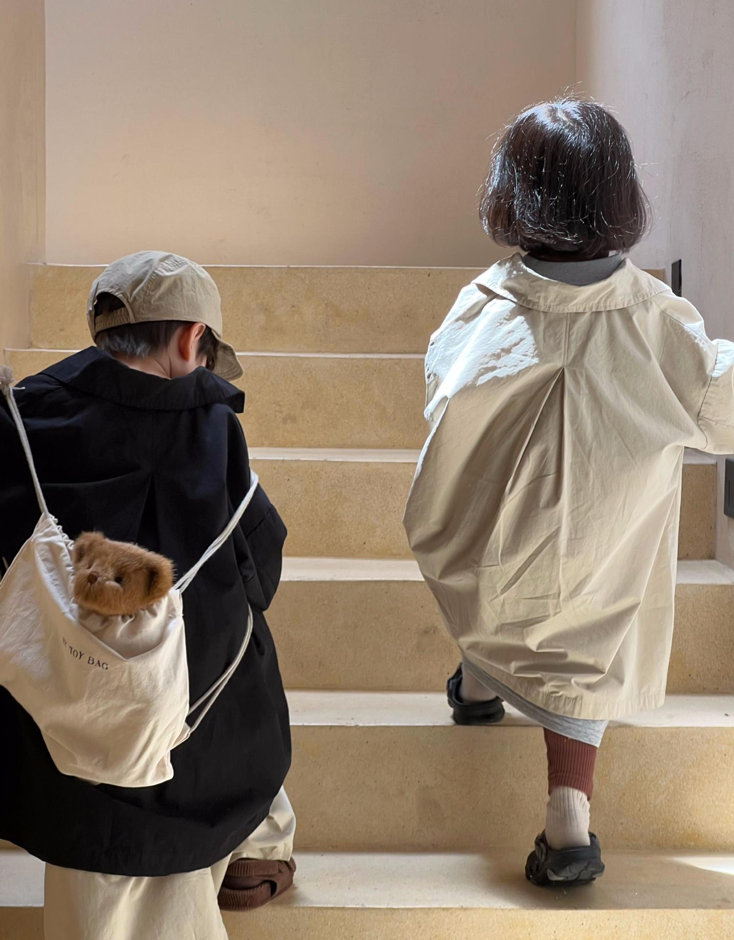 탑 에그 2023 가을 새로운 한국 아동복 아동 코트 소년과 소녀 긴 단색 옷깃 코트