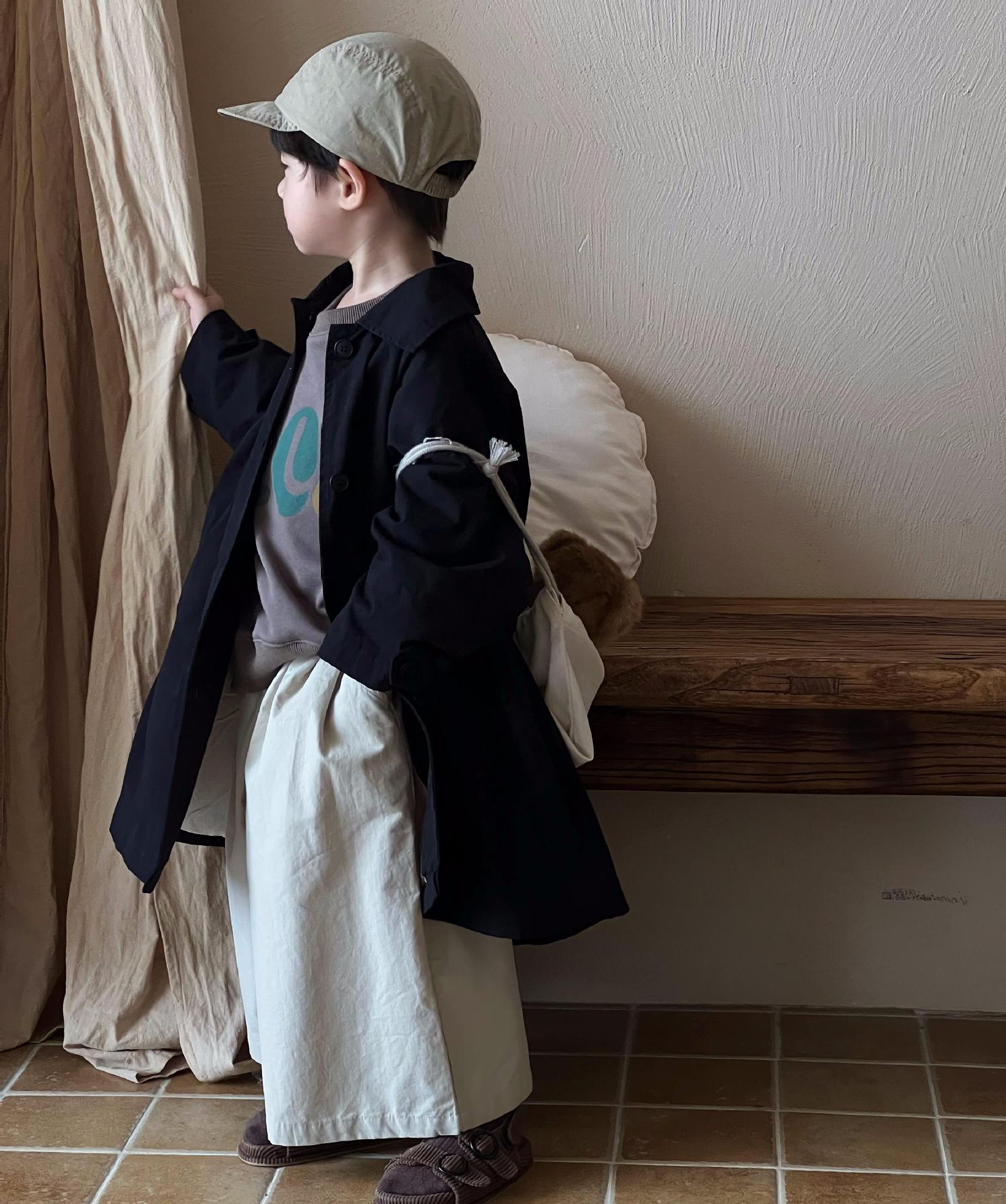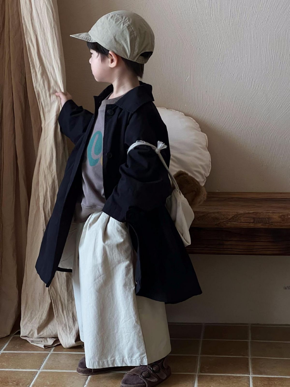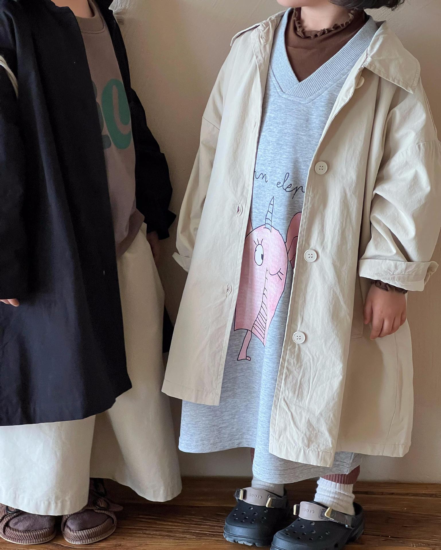 탑 에그 2023 가을 새로운 한국 아동복 아동 코트 소년과 소녀 긴 단색 옷깃 코트스토어 가기