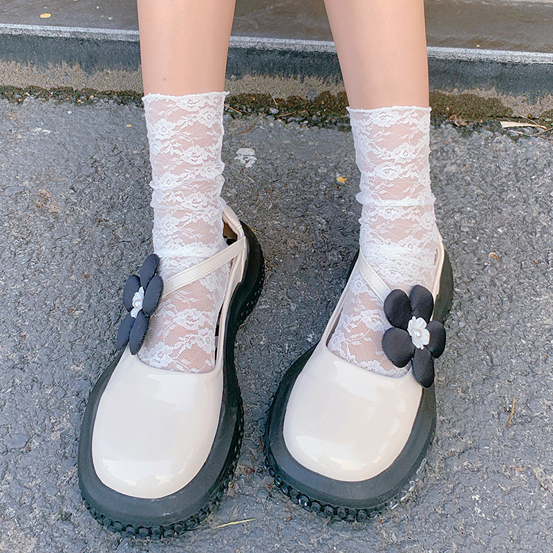 달콤한 복고풍 레이스 꽃 메쉬 스택 양말 봄과 여름 얇은 중공 짧은 양말 일본식 JK 흰색 중공 양말