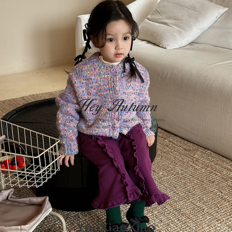 소녀 가을 새로운 틈새 두꺼운 보라색 스웨터 재킷 달콤한 우아한 한국 스타일 혼 바지 세트스토어 가기