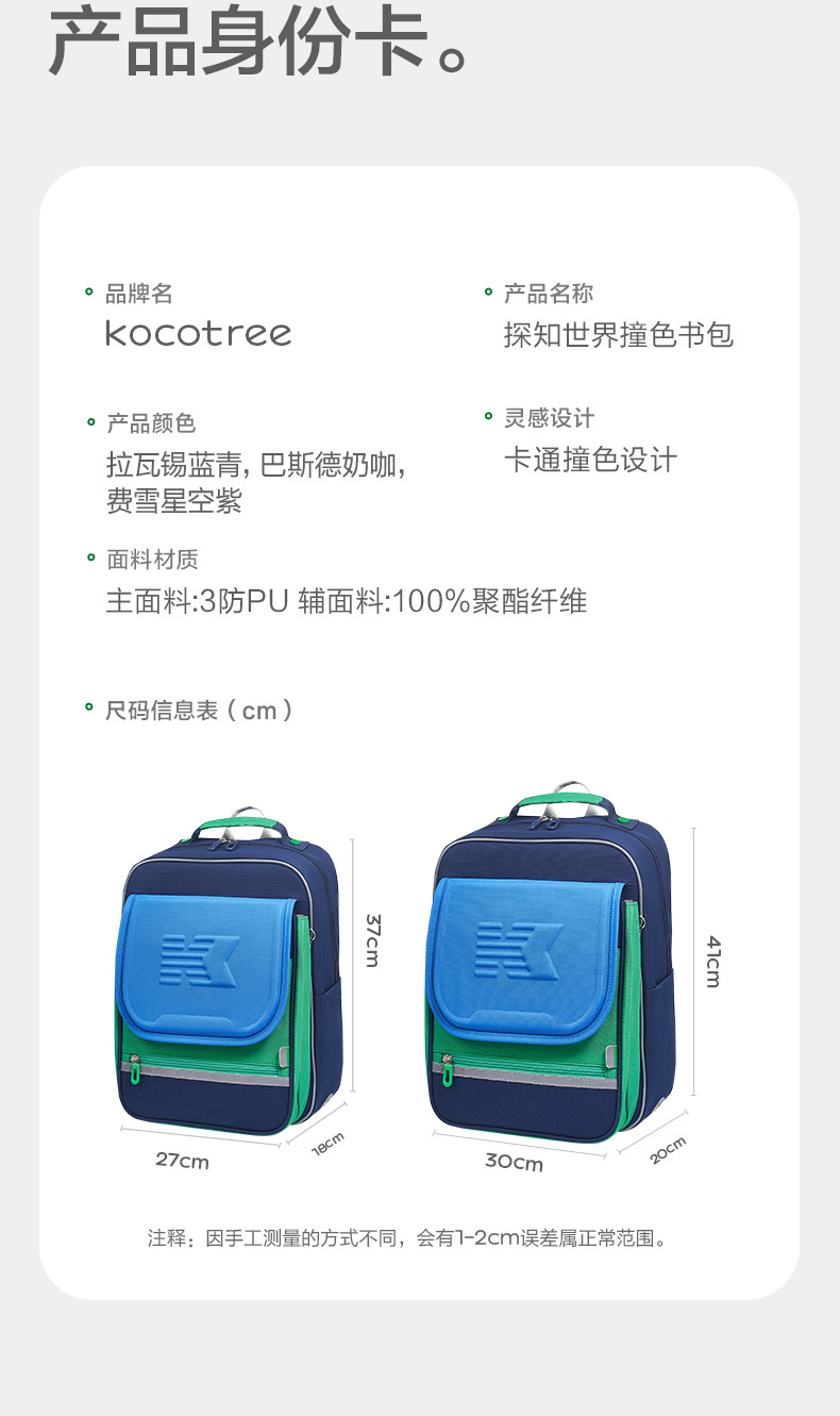 KK Tree 어린이 책가방 여자 초등학생 배낭 능선 보호 및 부담 감소 새로운 소년 배낭 1 학년 2 세 ~-6