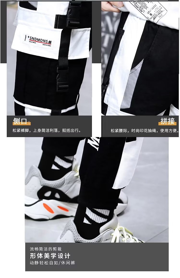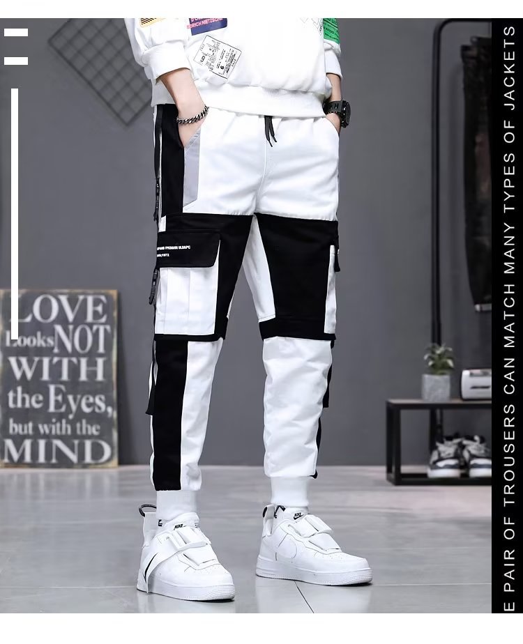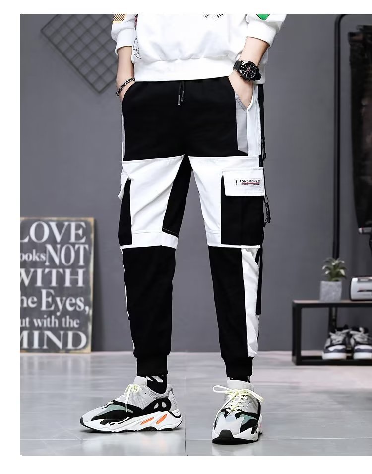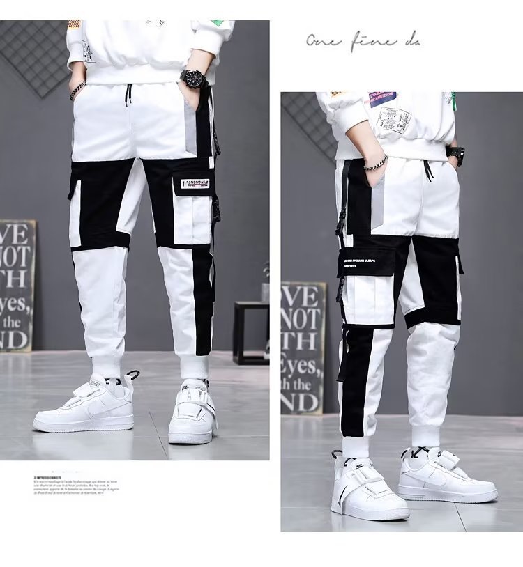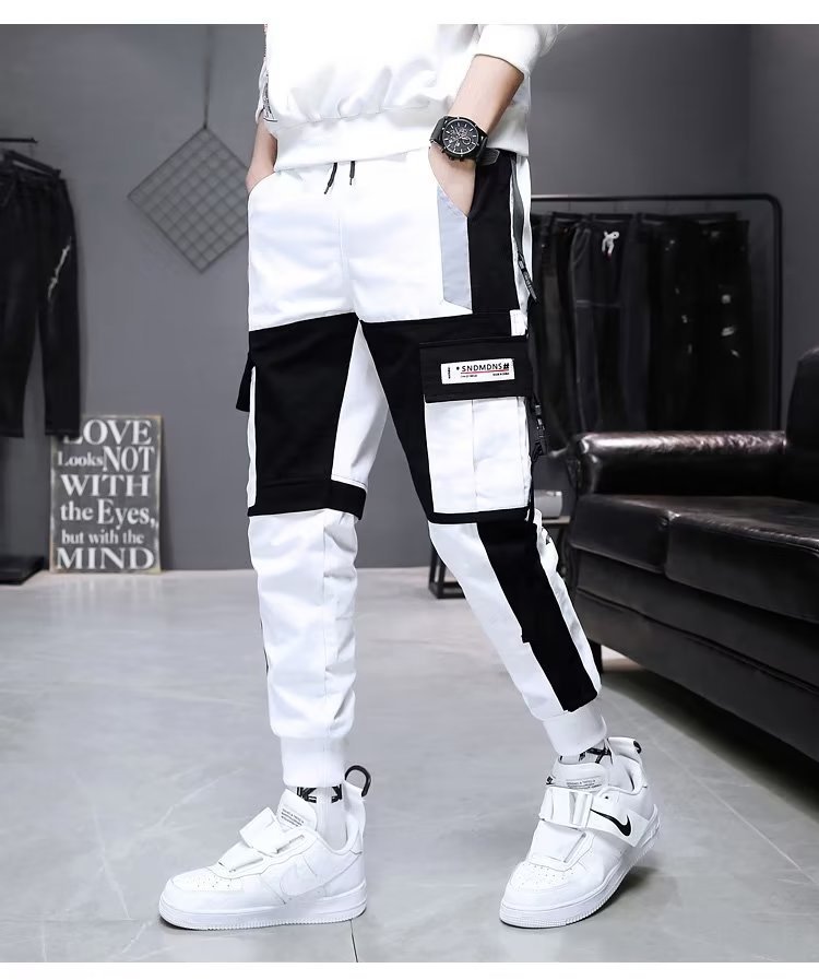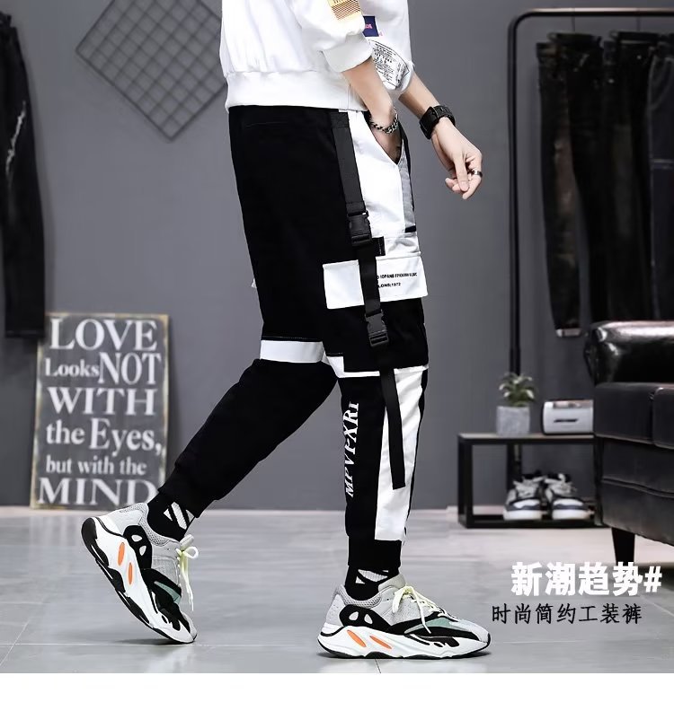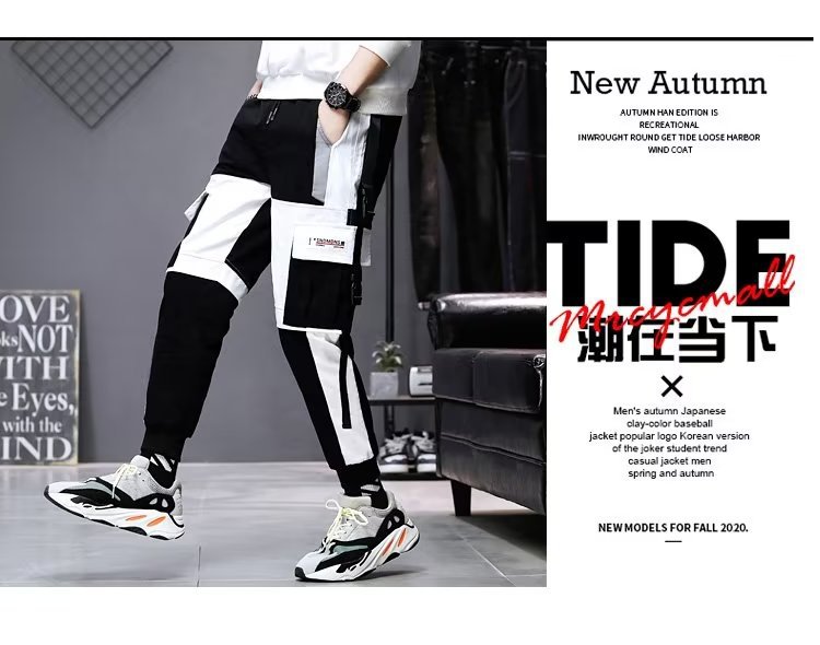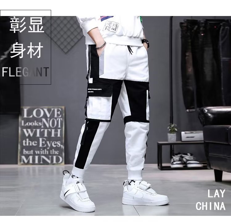 가을 크롭 작업복 바지 남성용 한국식 슬림핏 스키니 팬츠 스트리트 테더 스티치 캐주얼 틈새 트렌디 브랜드 팬츠스토어 가기
