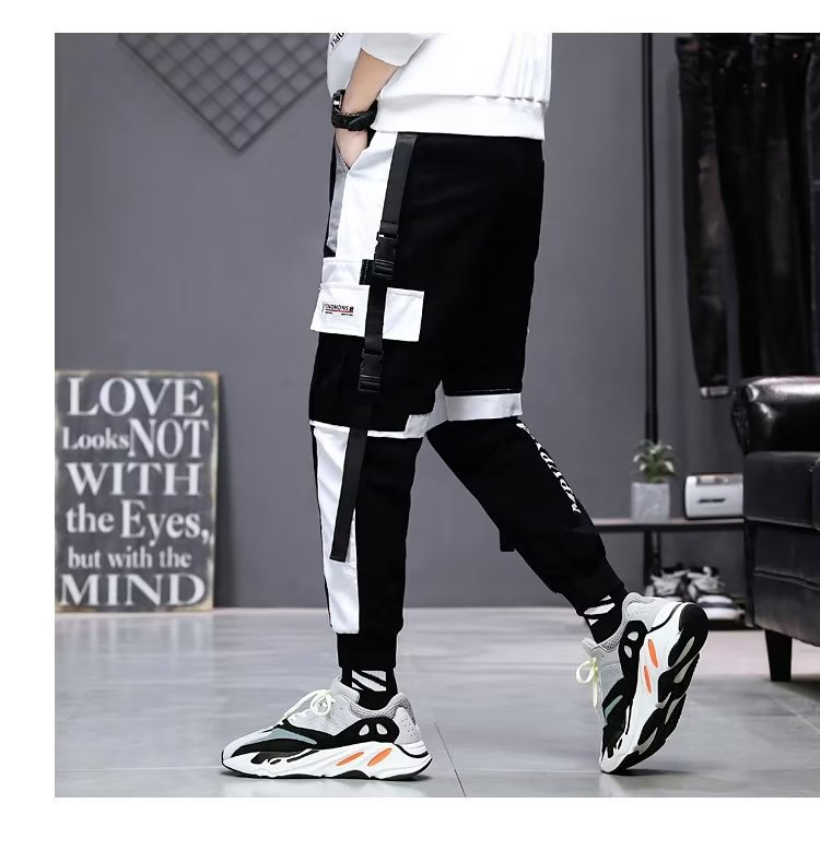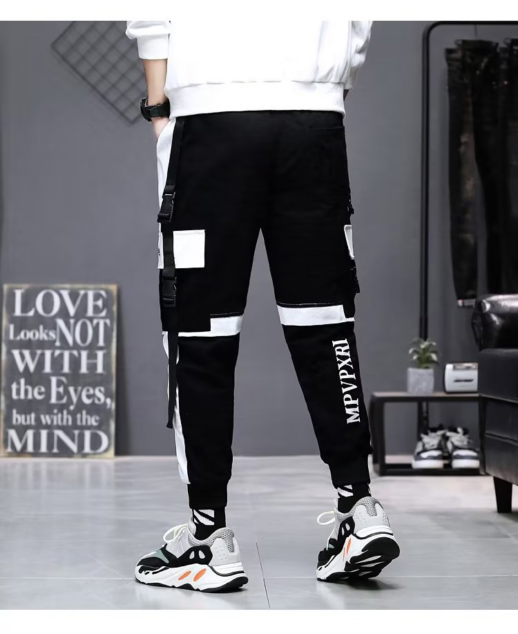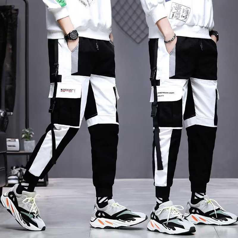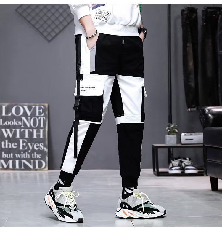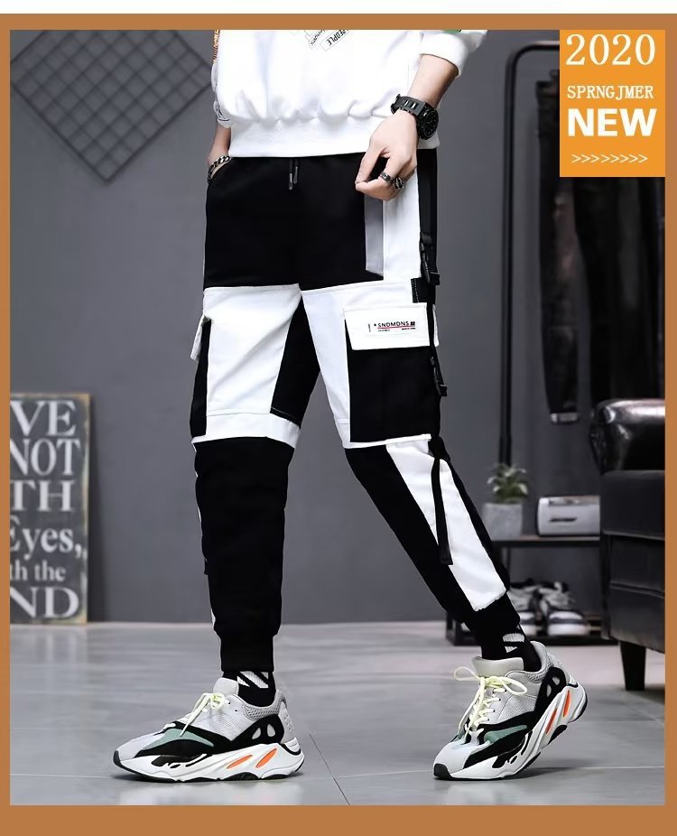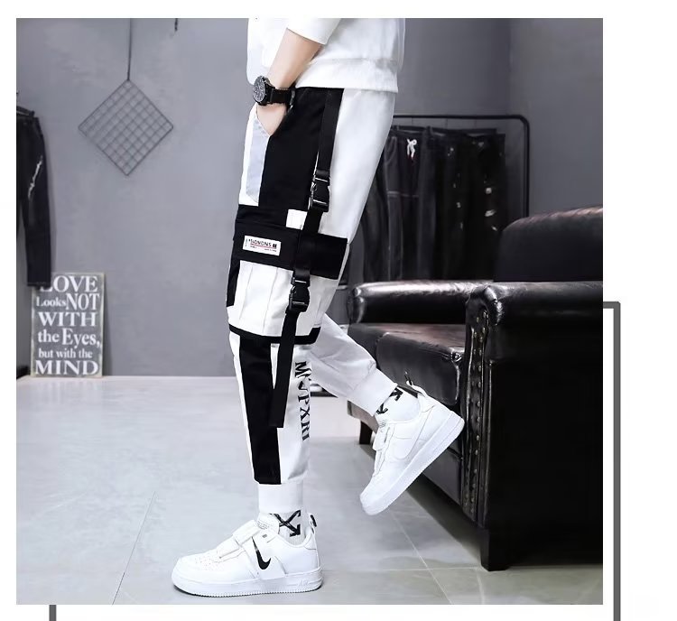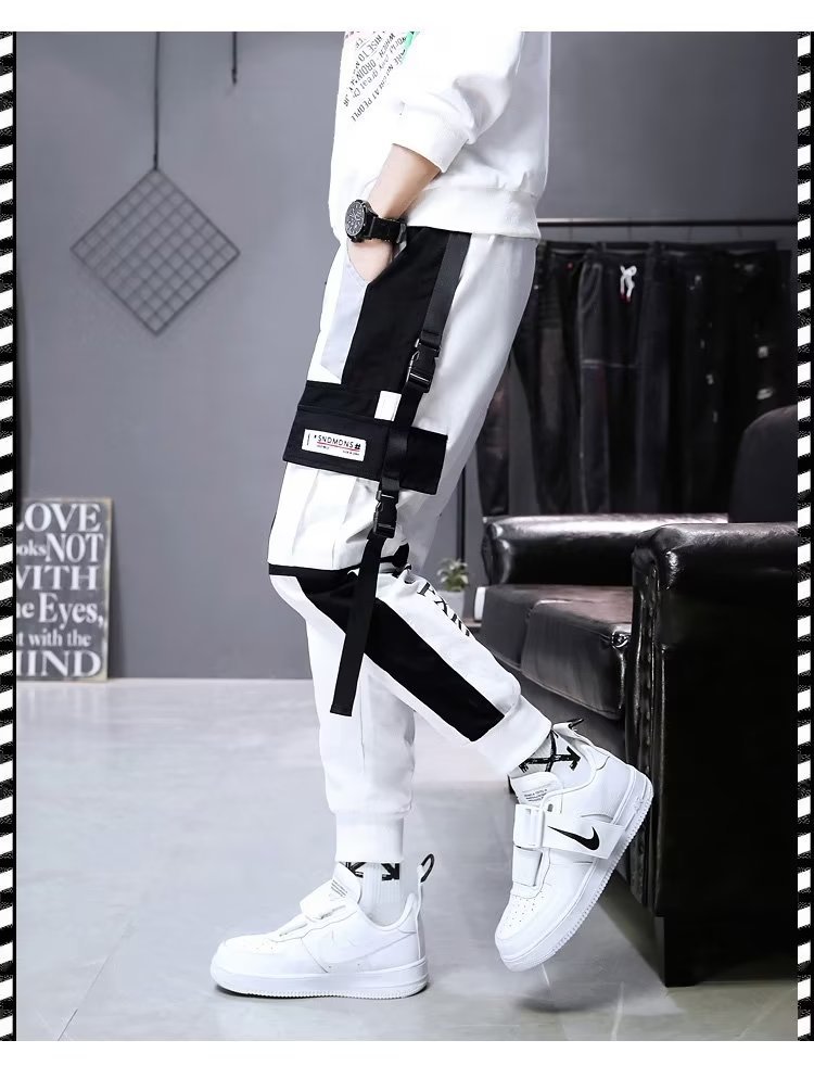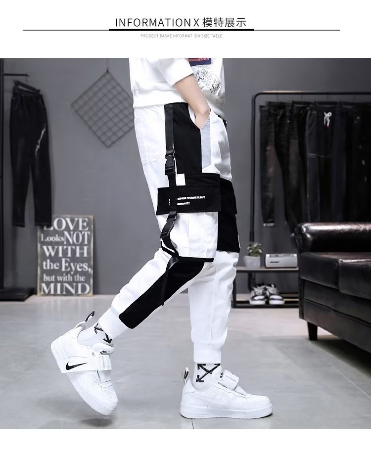 가을 크롭 작업복 바지 남성용 한국식 슬림핏 스키니 팬츠 스트리트 테더 스티치 캐주얼 틈새 트렌디 브랜드 팬츠스토어 가기