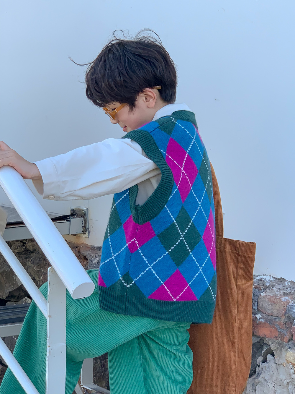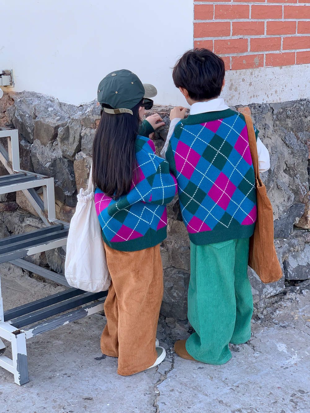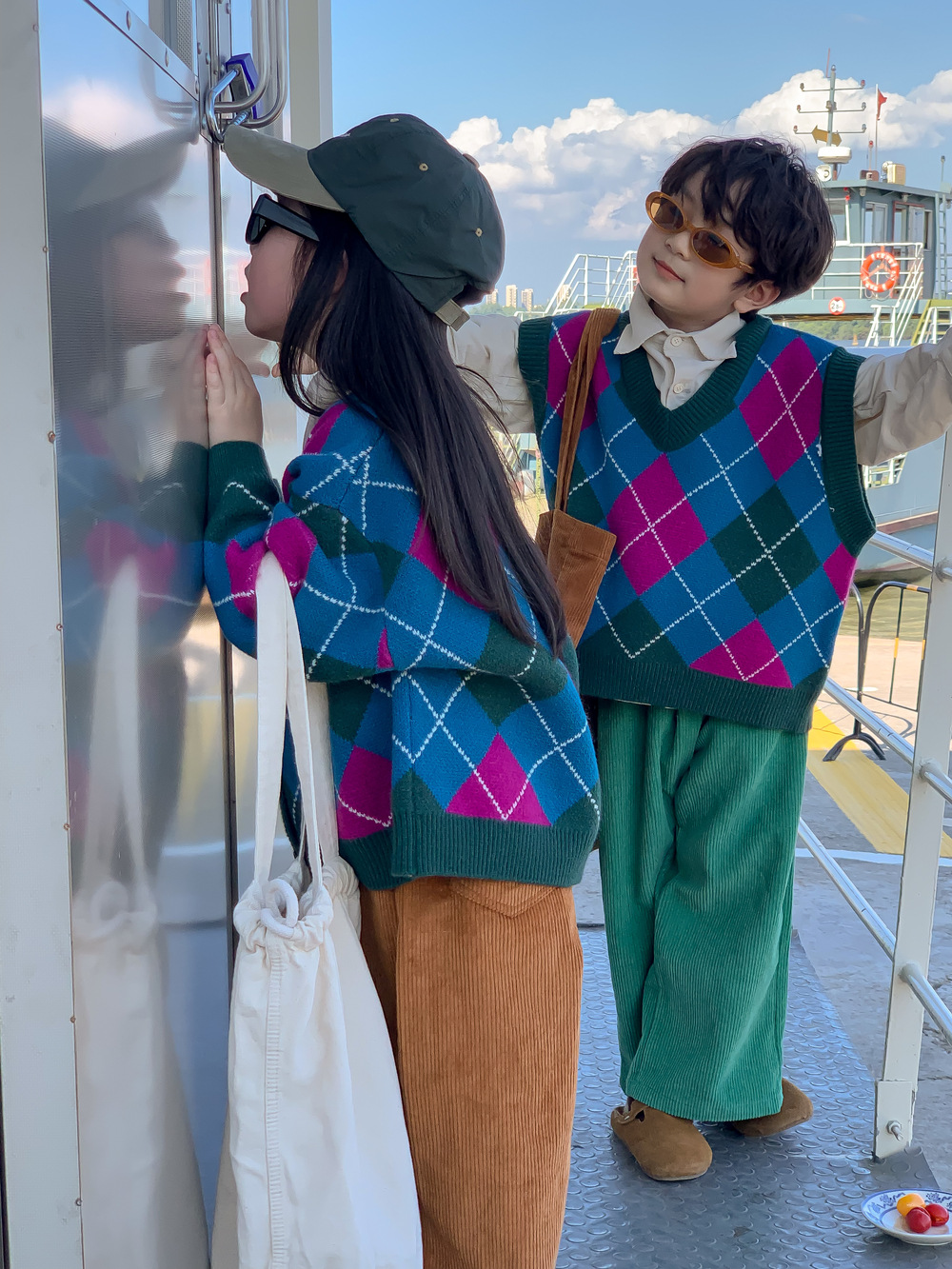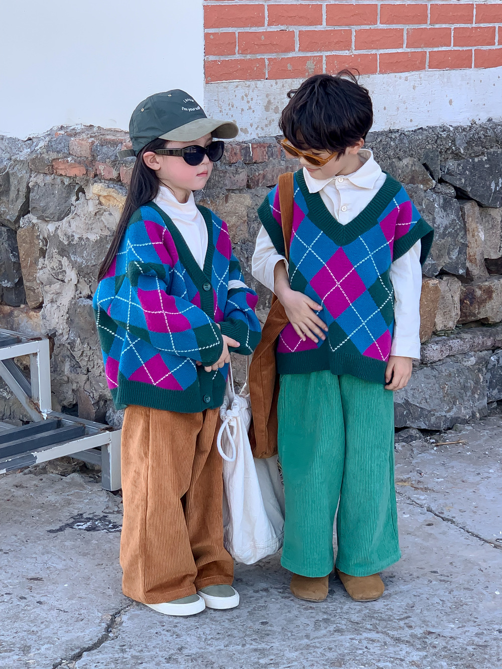 아동용 스웨터 2025 가을 남아 여아 한국 스타일 다이아몬드 무늬 니트 조끼 아동용 캐주얼 루즈핏 모직 조끼스토어 가기