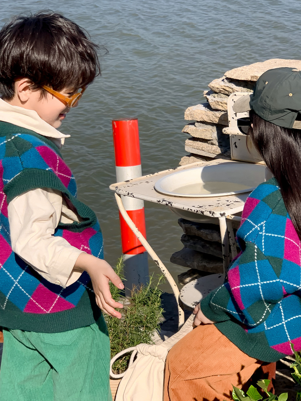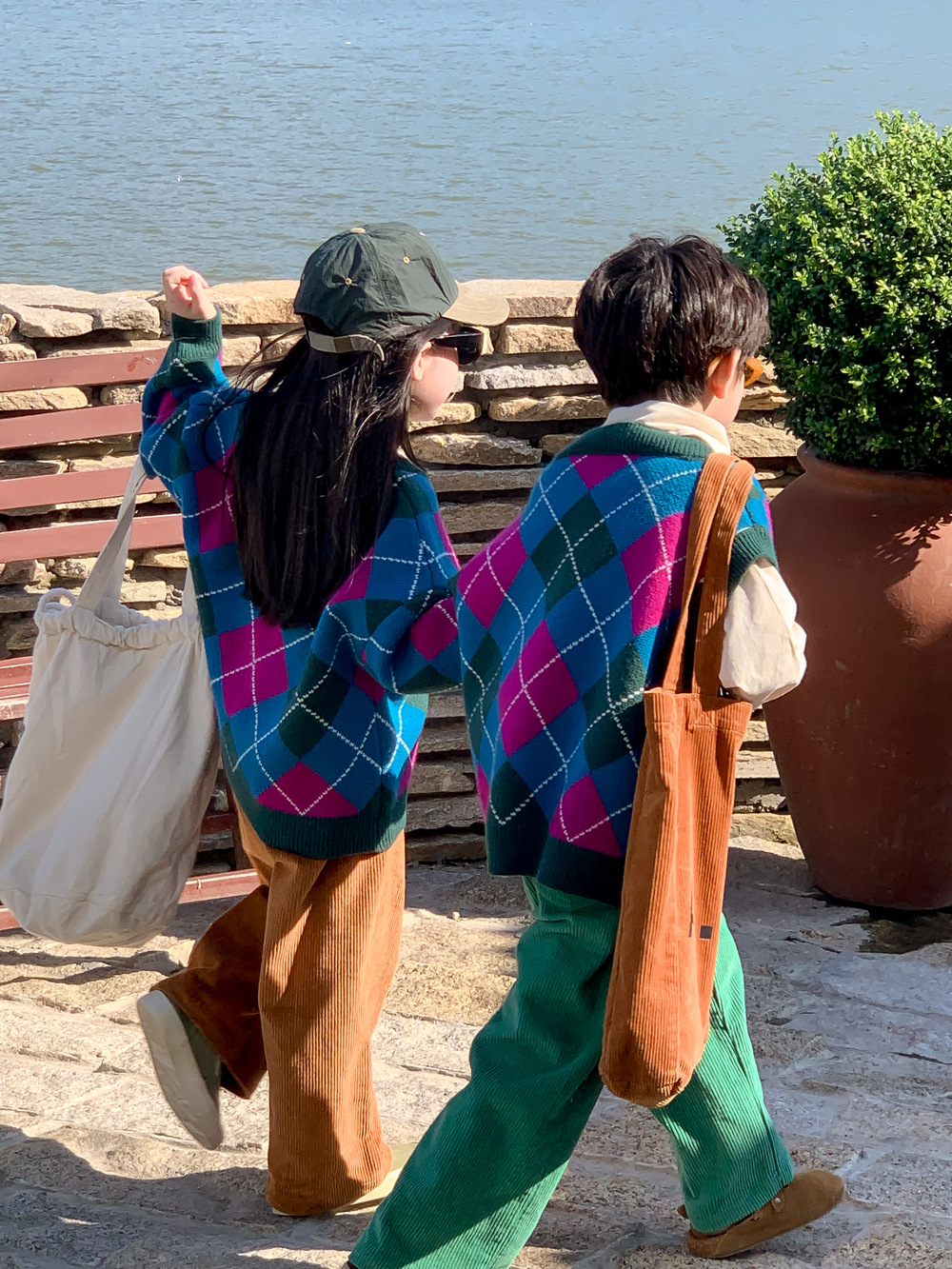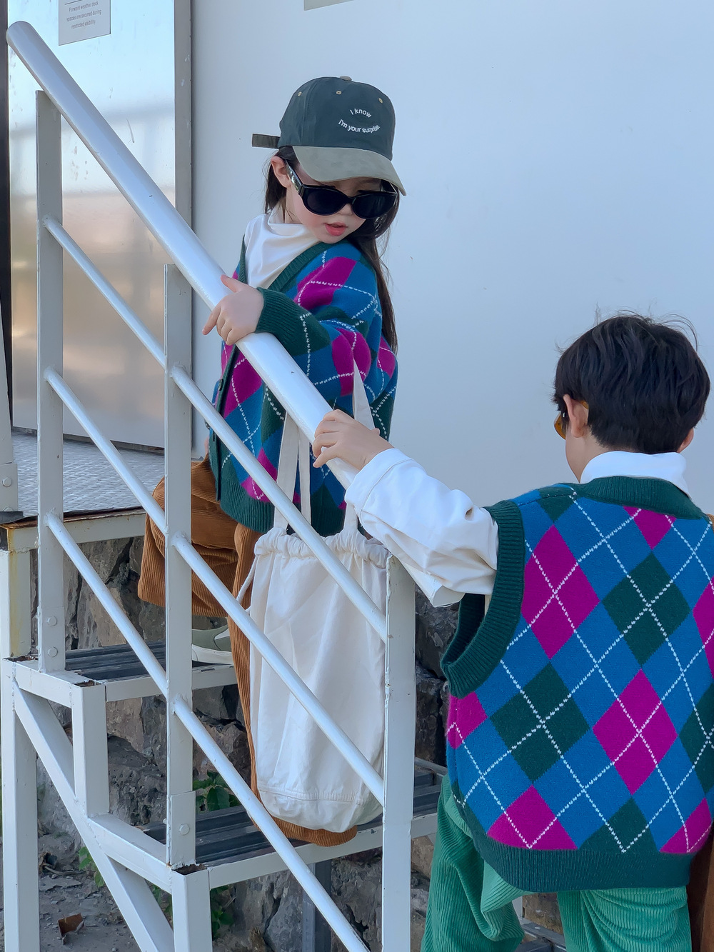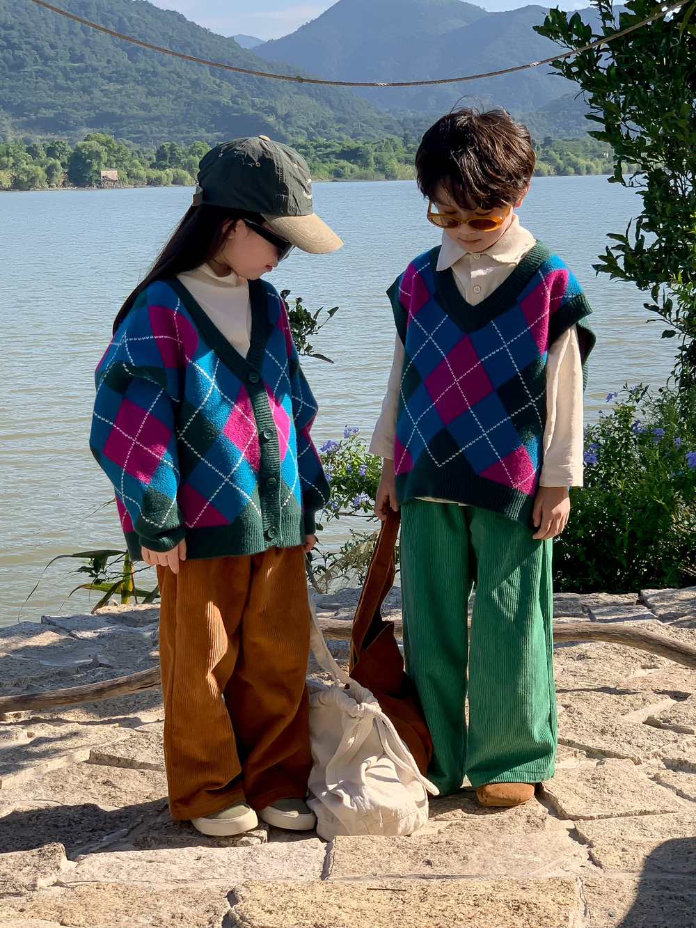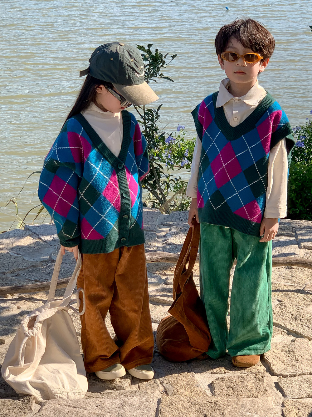 아동용 스웨터 2025 가을 남아 여아 한국 스타일 다이아몬드 무늬 니트 조끼 아동용 캐주얼 루즈핏 모직 조끼스토어 가기