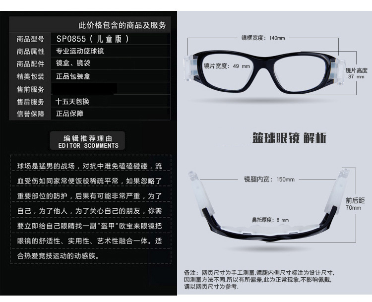 어린이 프로 축구 농구 안경 폭발 방지 스포츠 고글 실리콘 흘림 방지 근시 스포츠 안경 0855