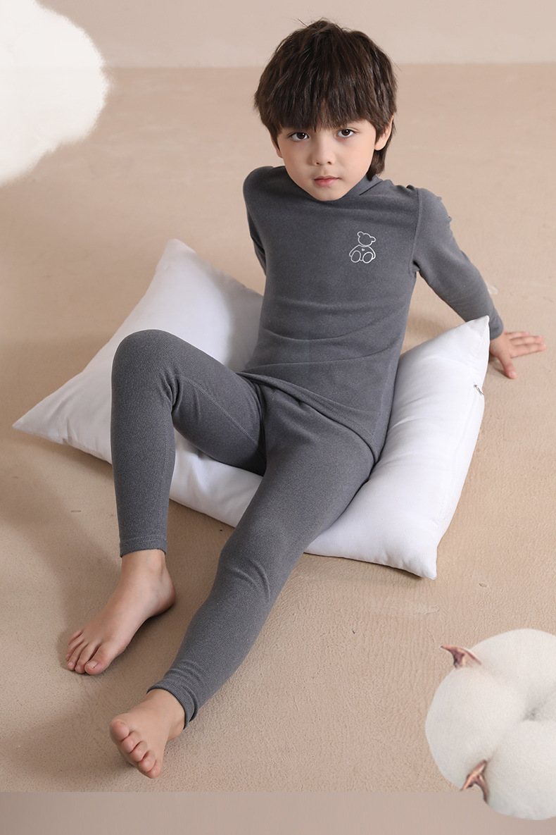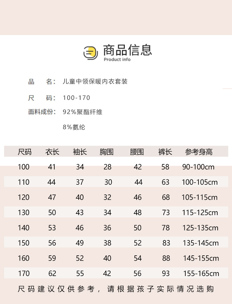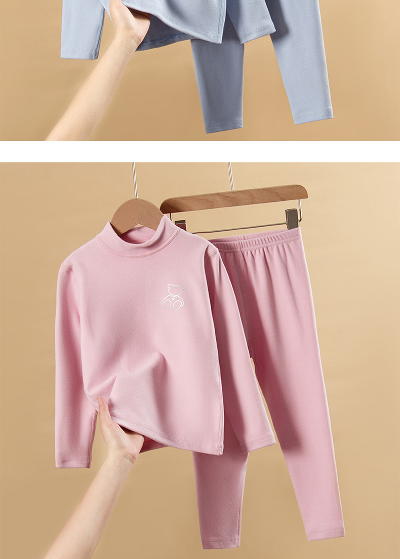 소년과 소녀를위한 어린이 중간 칼라 열 속옷 세트 가을과 겨울 두꺼운 가을 바지 가을 바지 아기 샌딩 홈 잠옷 벨벳