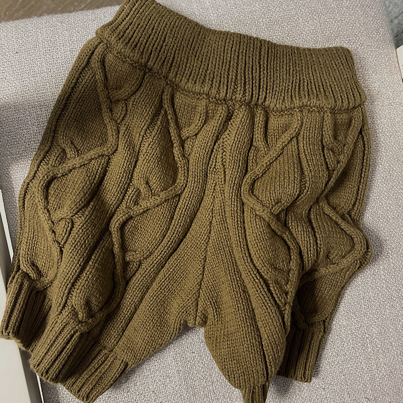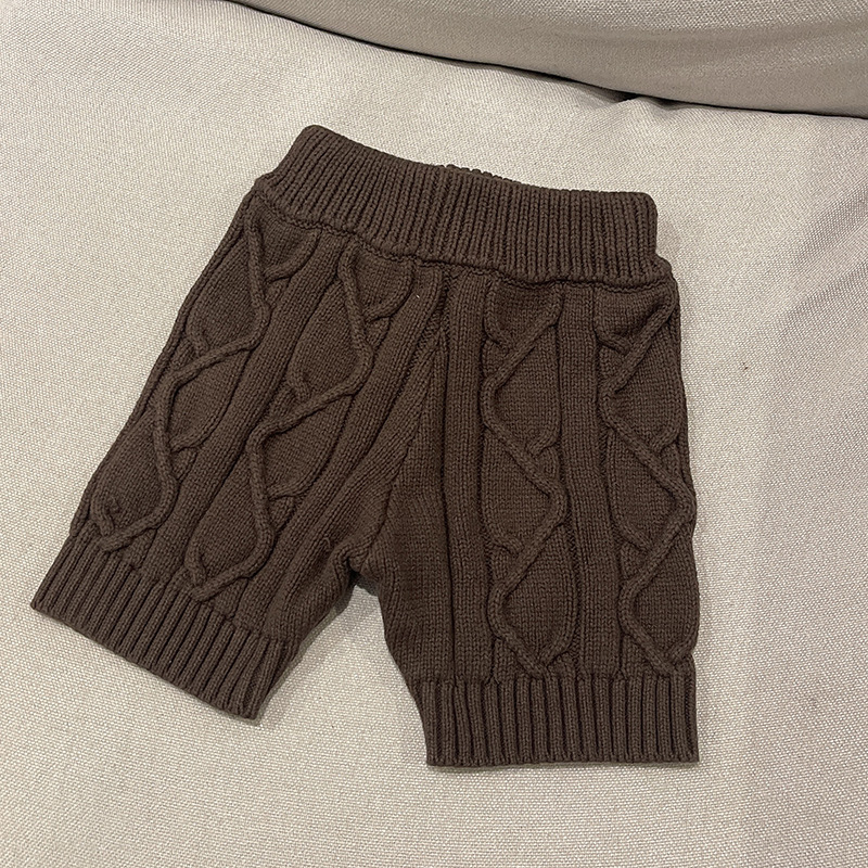 한국 소년과 소녀 아기의 대마 패턴 니트 바지 2023 가을과 겨울 어린이 서양식 5 점 바지 울 바지