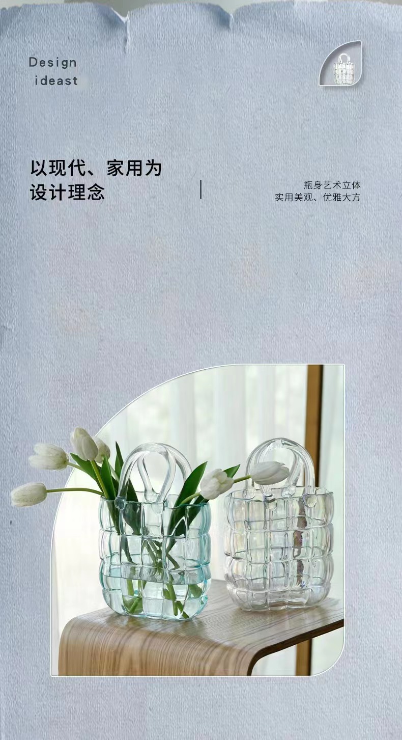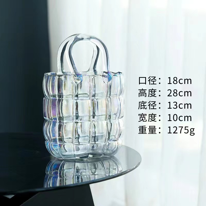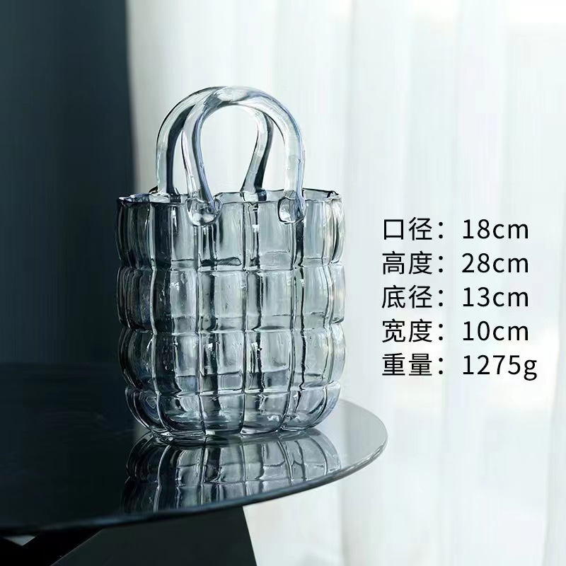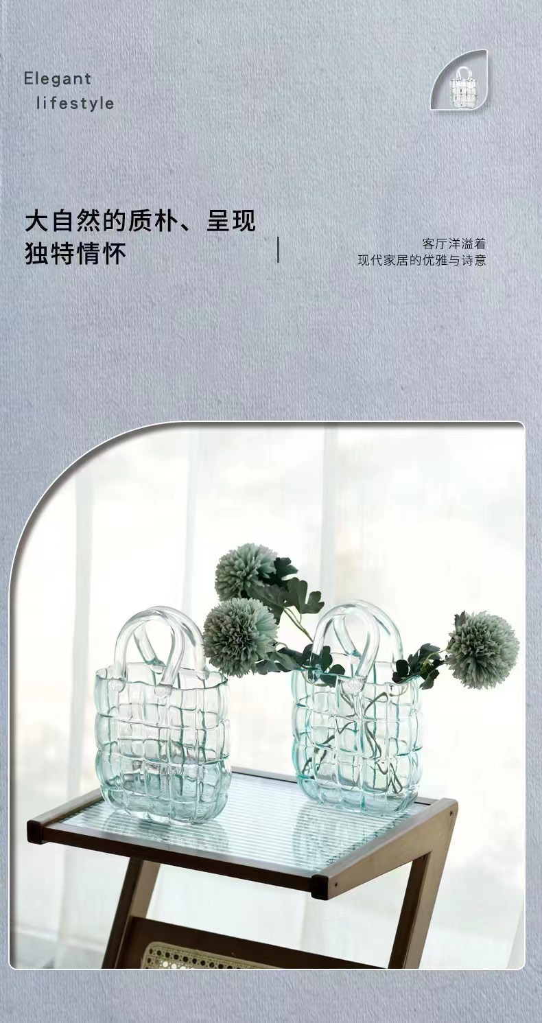 북유럽 스타일 스퀘어 백 유리 꽃병 디자이너 사이버 연예인 핸드백 수경 꽃 바구니 물고기 문화스토어 가기