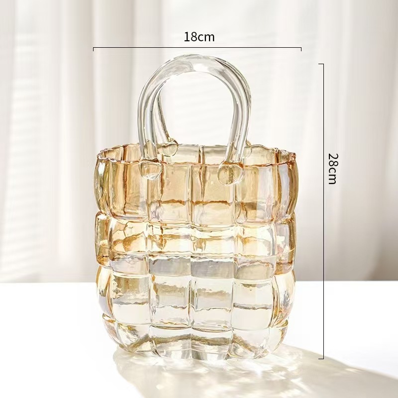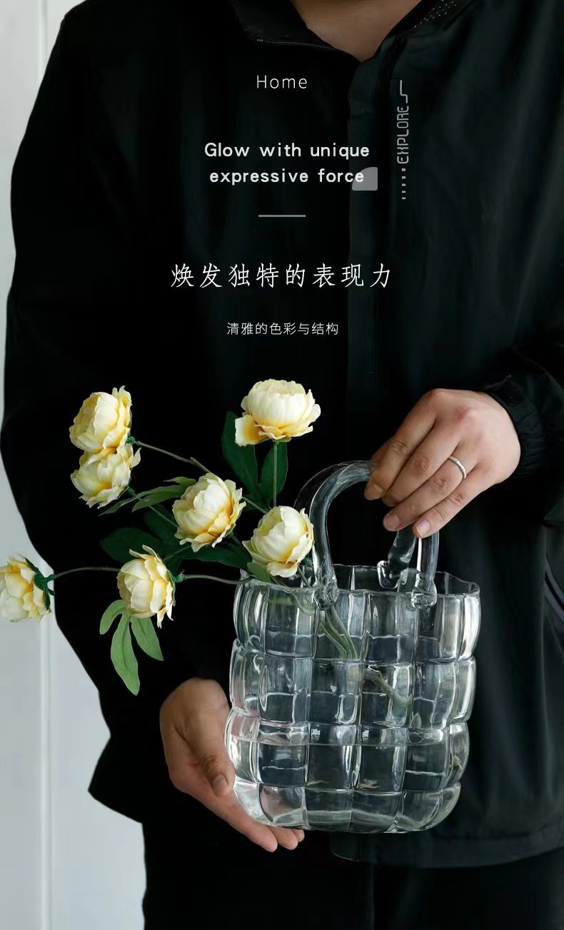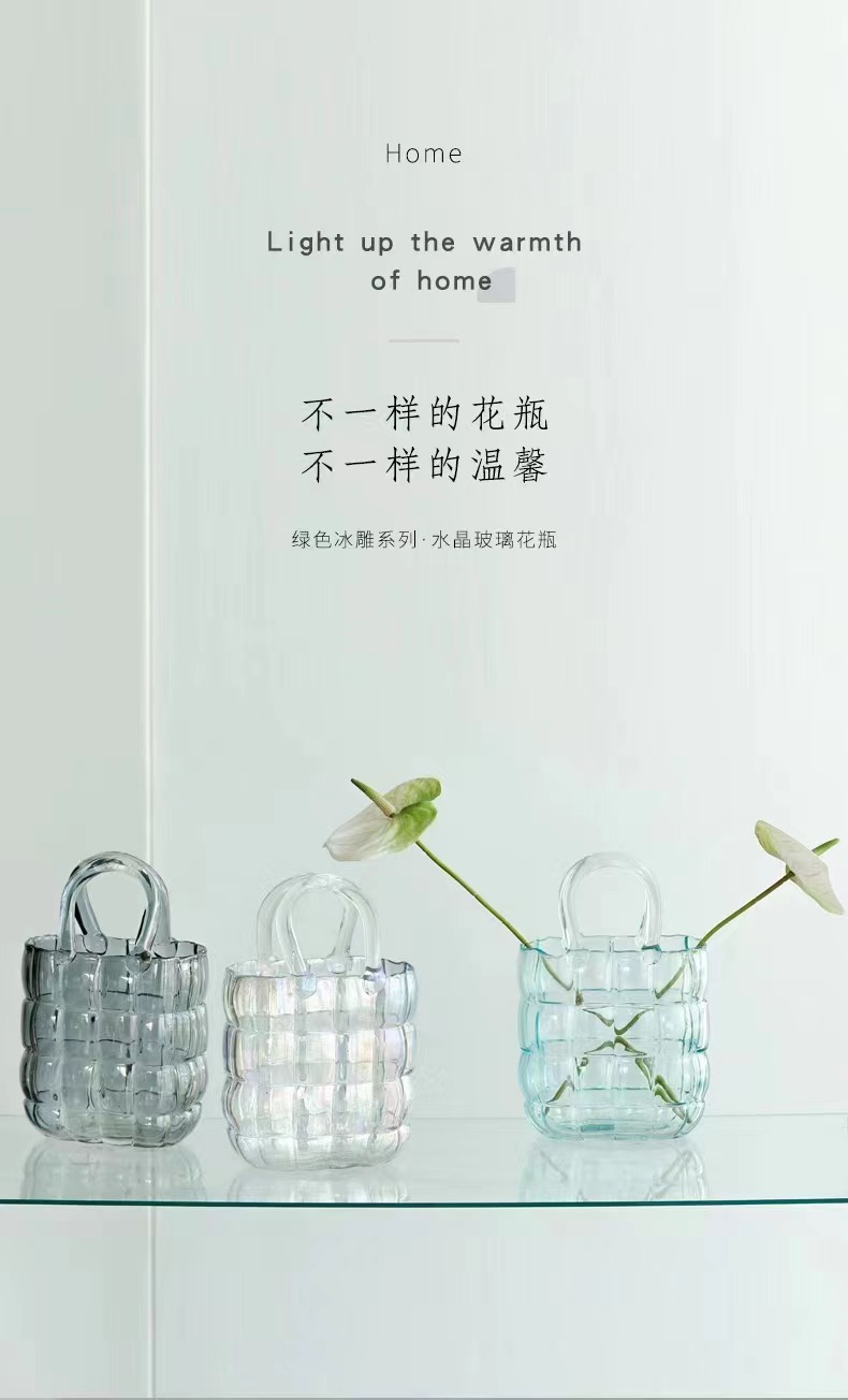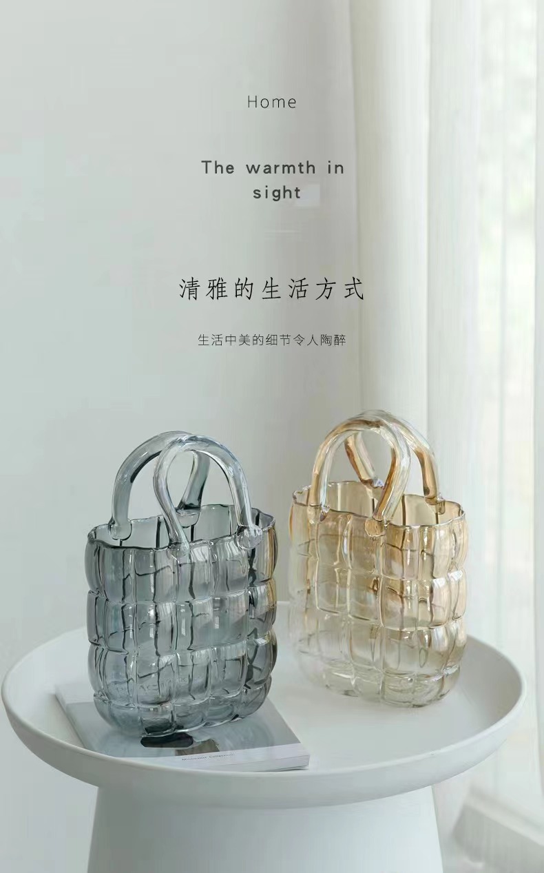 북유럽 스타일 스퀘어 백 유리 꽃병 디자이너 사이버 연예인 핸드백 수경 꽃 바구니 물고기 문화스토어 가기
