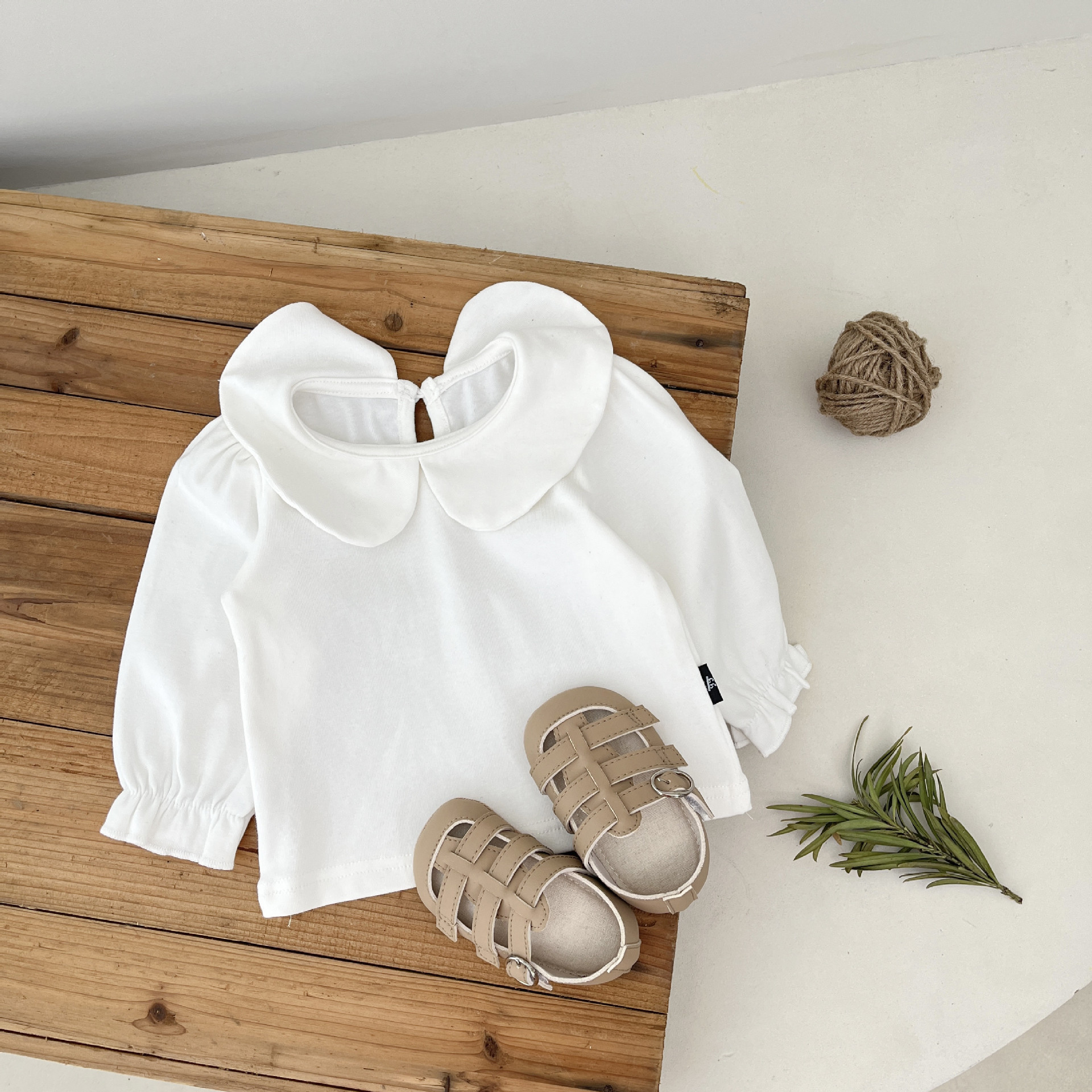 한국 스타일 아기 소녀 봄 탑 서양 스타일 유행 티셔츠 꽃 인형 칼라 긴 소매 기본 셔츠 아기 옷스토어 가기