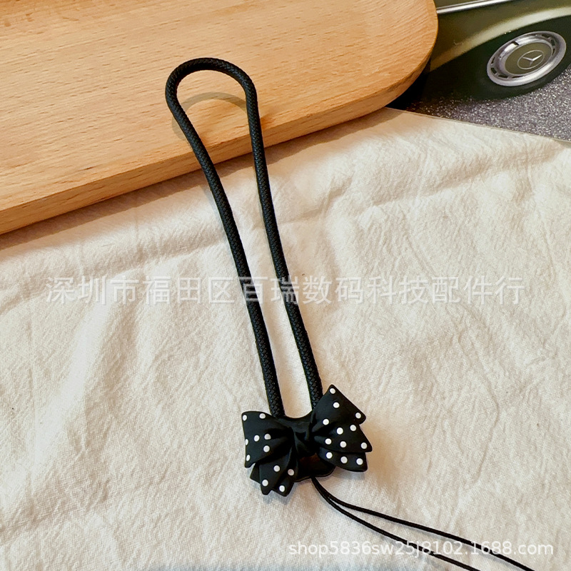 • 블랙 실리콘 손목 로프 - 화이트 폴카 도트 블랙 리본