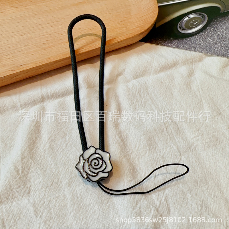 새로운 만화 밝은 얼굴 복고풍 흑백 동백 휴대 전화 끈 실리콘 손목 로프 작은 팬 펜던트 높은 감각스토어 가기