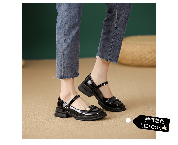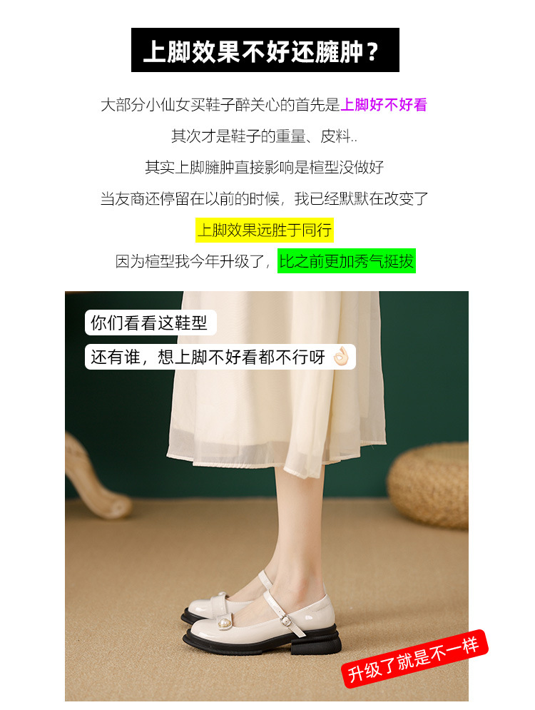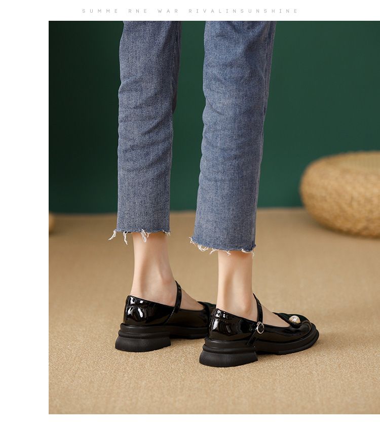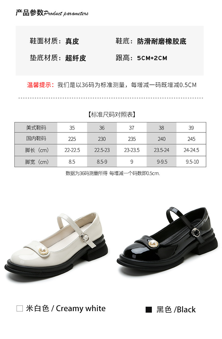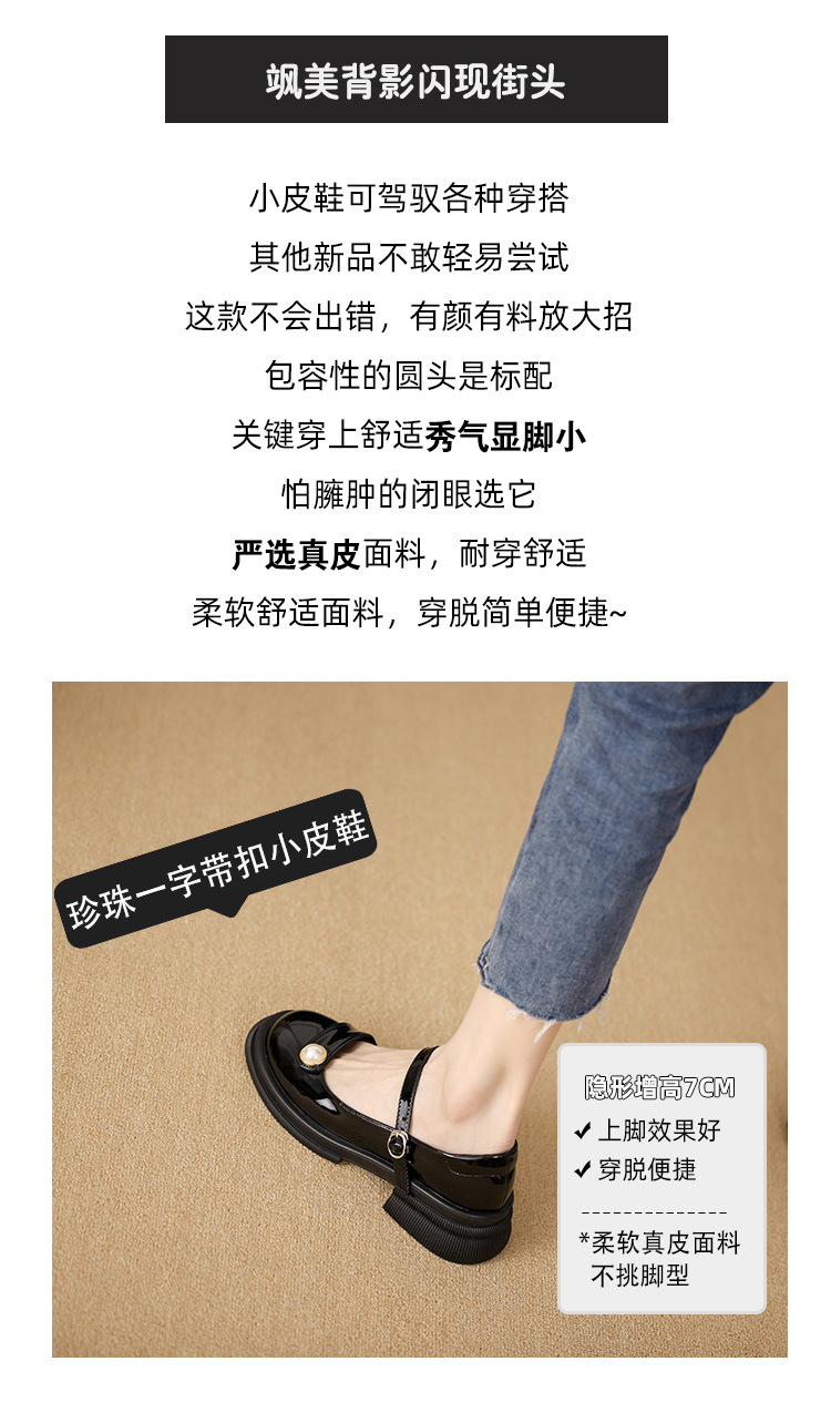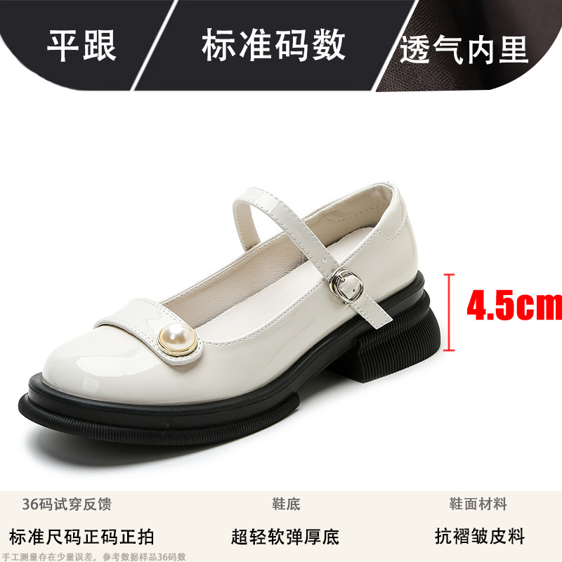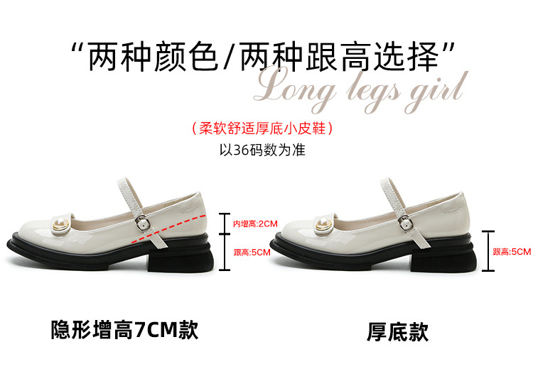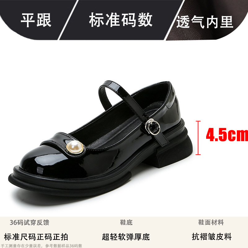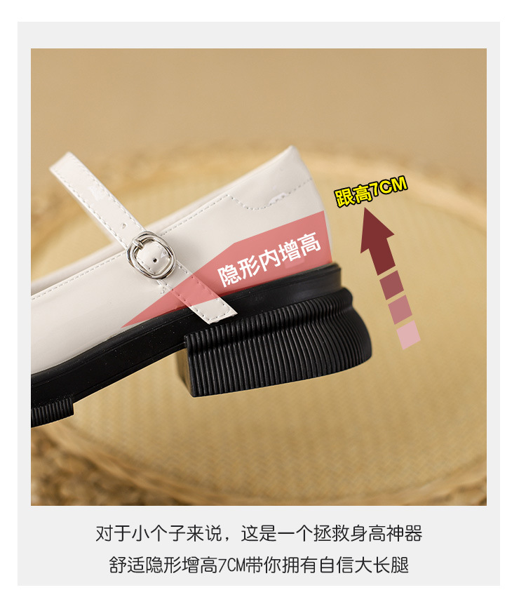내부 키높이 두꺼운 밑창 메리제인 여성화 2024년 신상 얕은 구두 인기 모델 두꺼운 굽 작은 가죽 신발 소형 사이즈스토어 가기