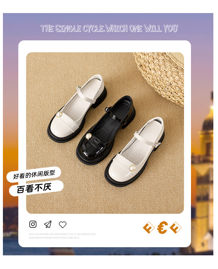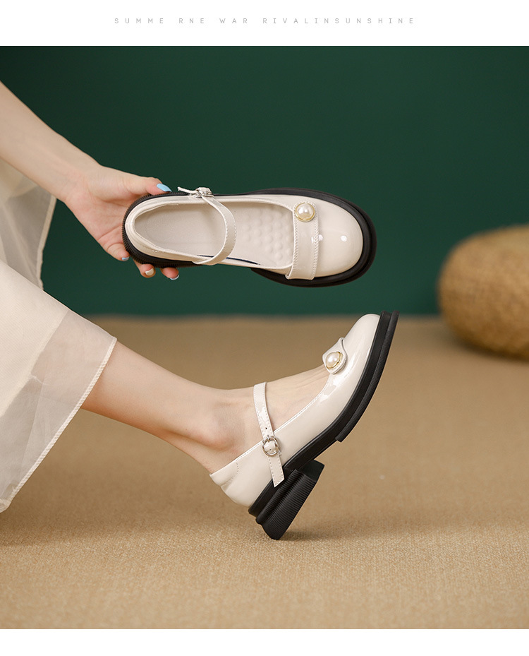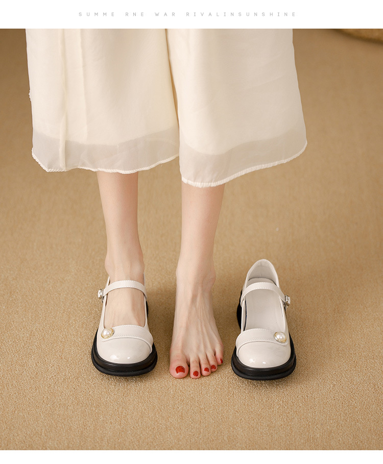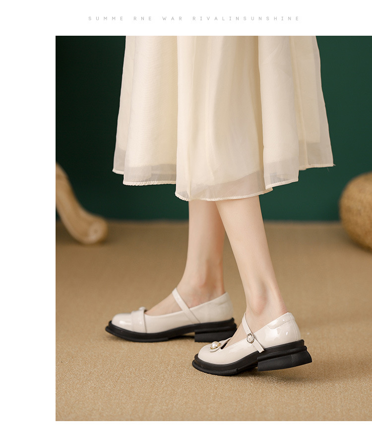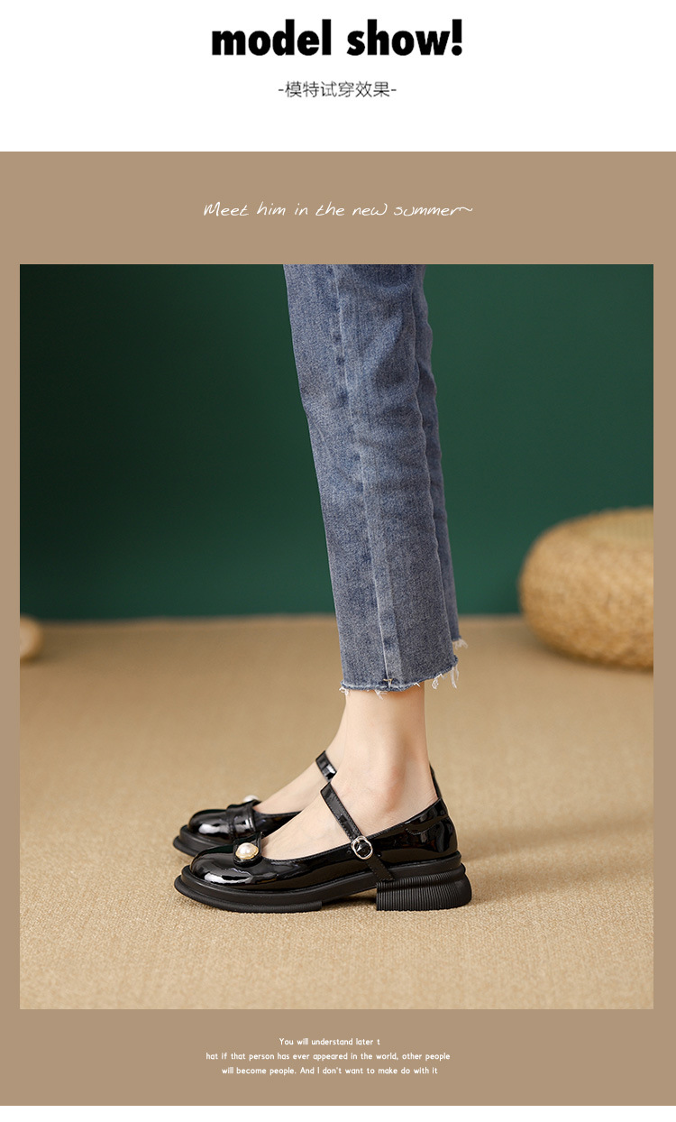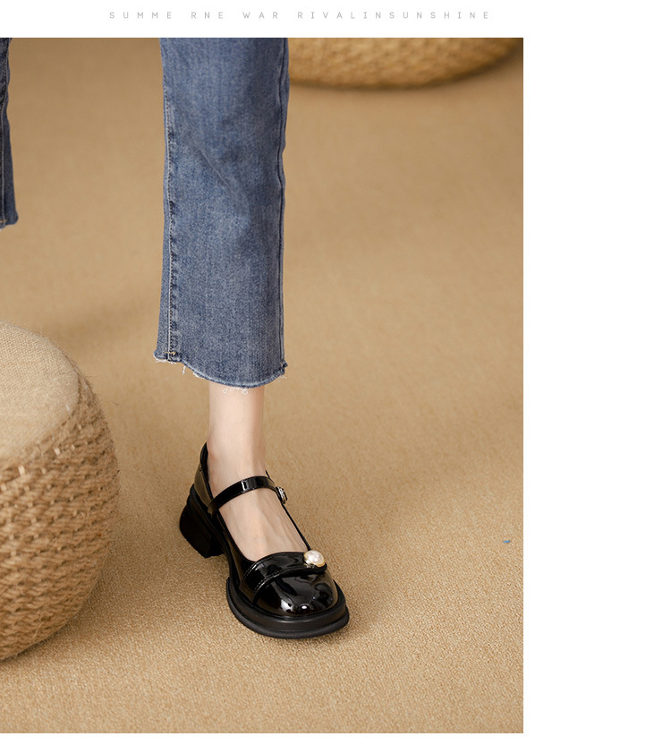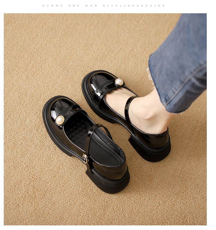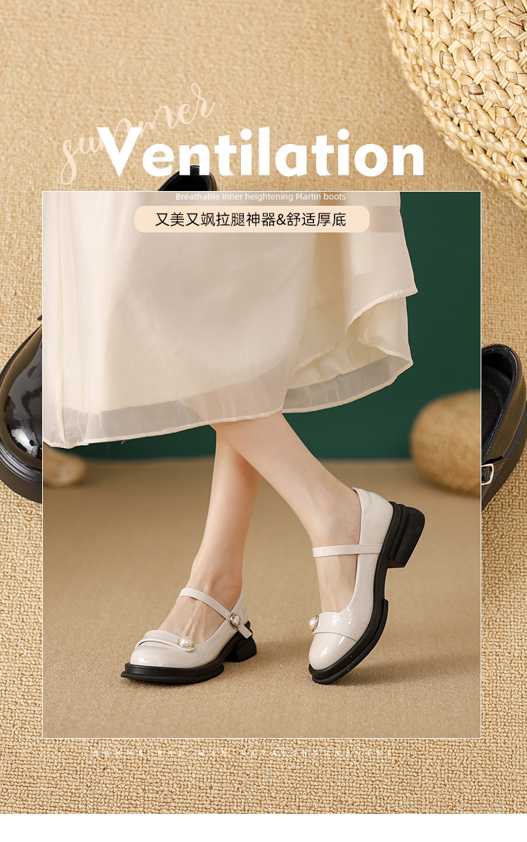 내부 키높이 두꺼운 밑창 메리제인 여성화 2024년 신상 얕은 구두 인기 모델 두꺼운 굽 작은 가죽 신발 소형 사이즈스토어 가기