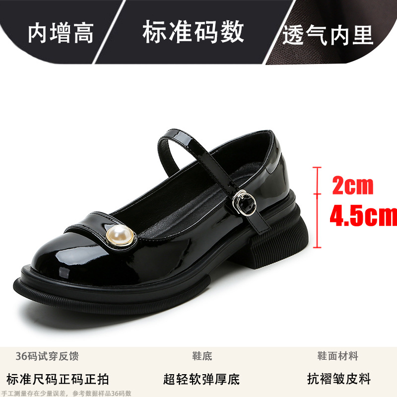 내부 키높이 두꺼운 밑창 메리제인 여성화 2024년 신상 얕은 구두 인기 모델 두꺼운 굽 작은 가죽 신발 소형 사이즈