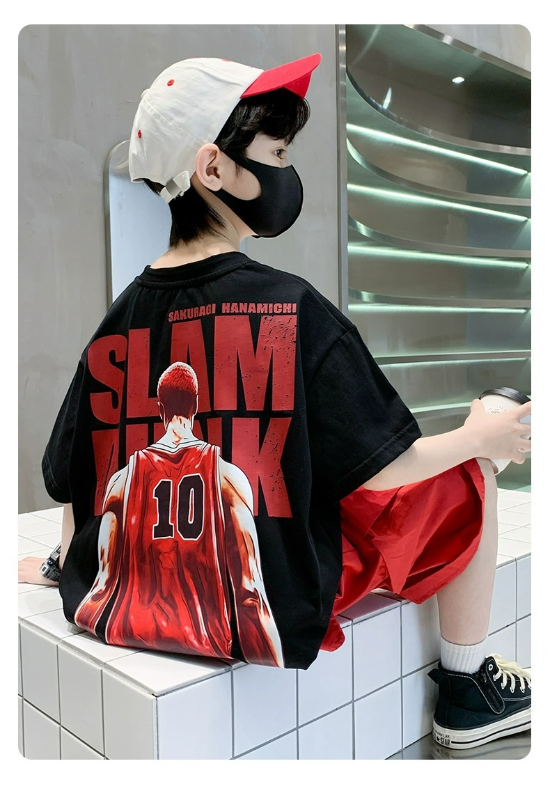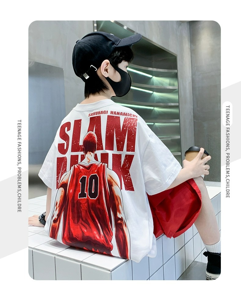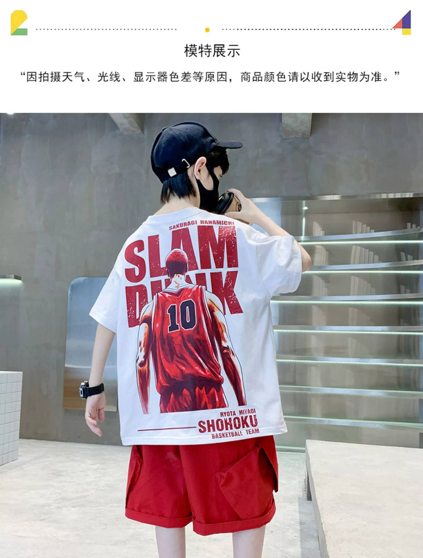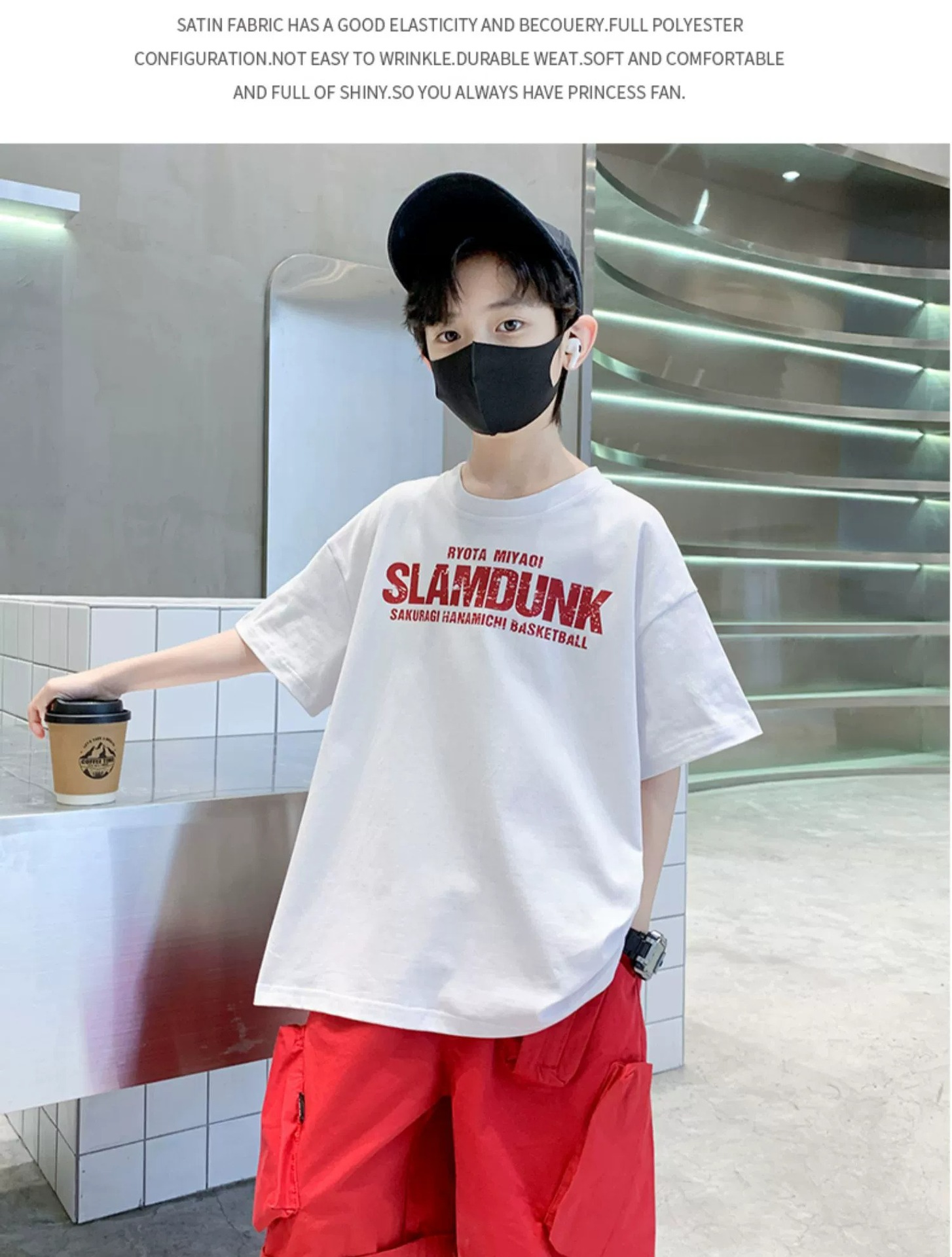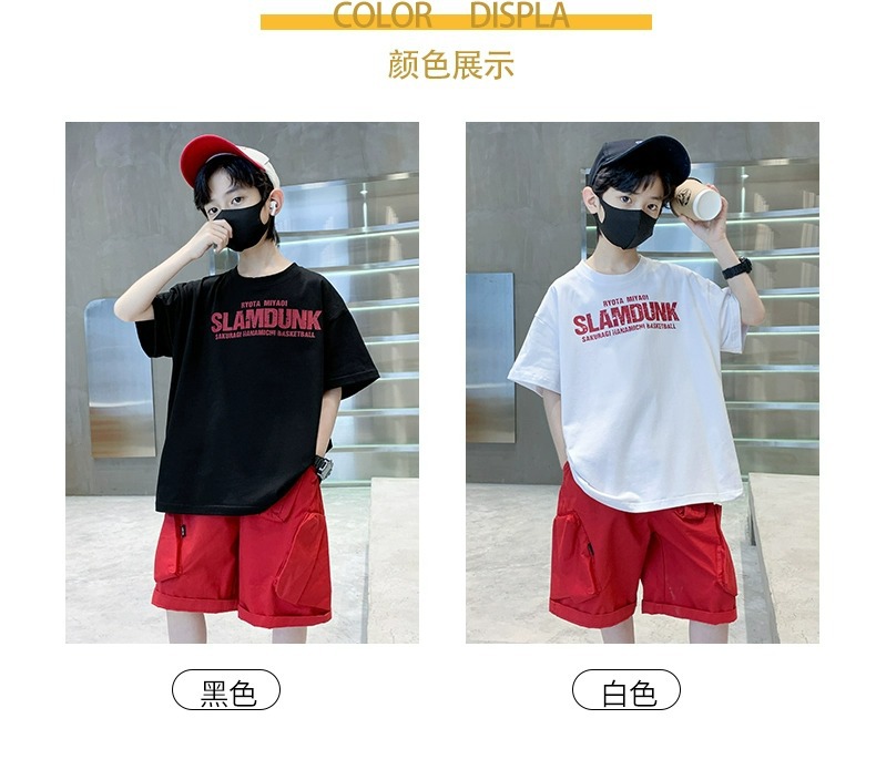220g Boys 'Summer Wear Fried Street 반팔 코튼 티셔츠 중 및 빅 어린이 서양식 소년 여름 탑 어린이 유행 티셔츠