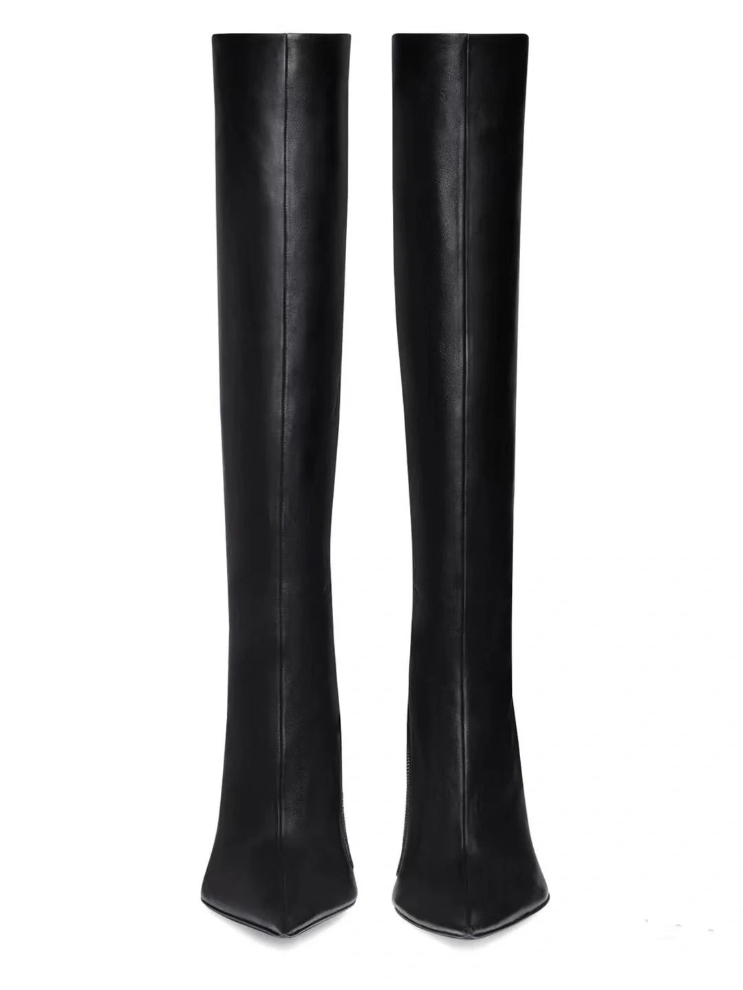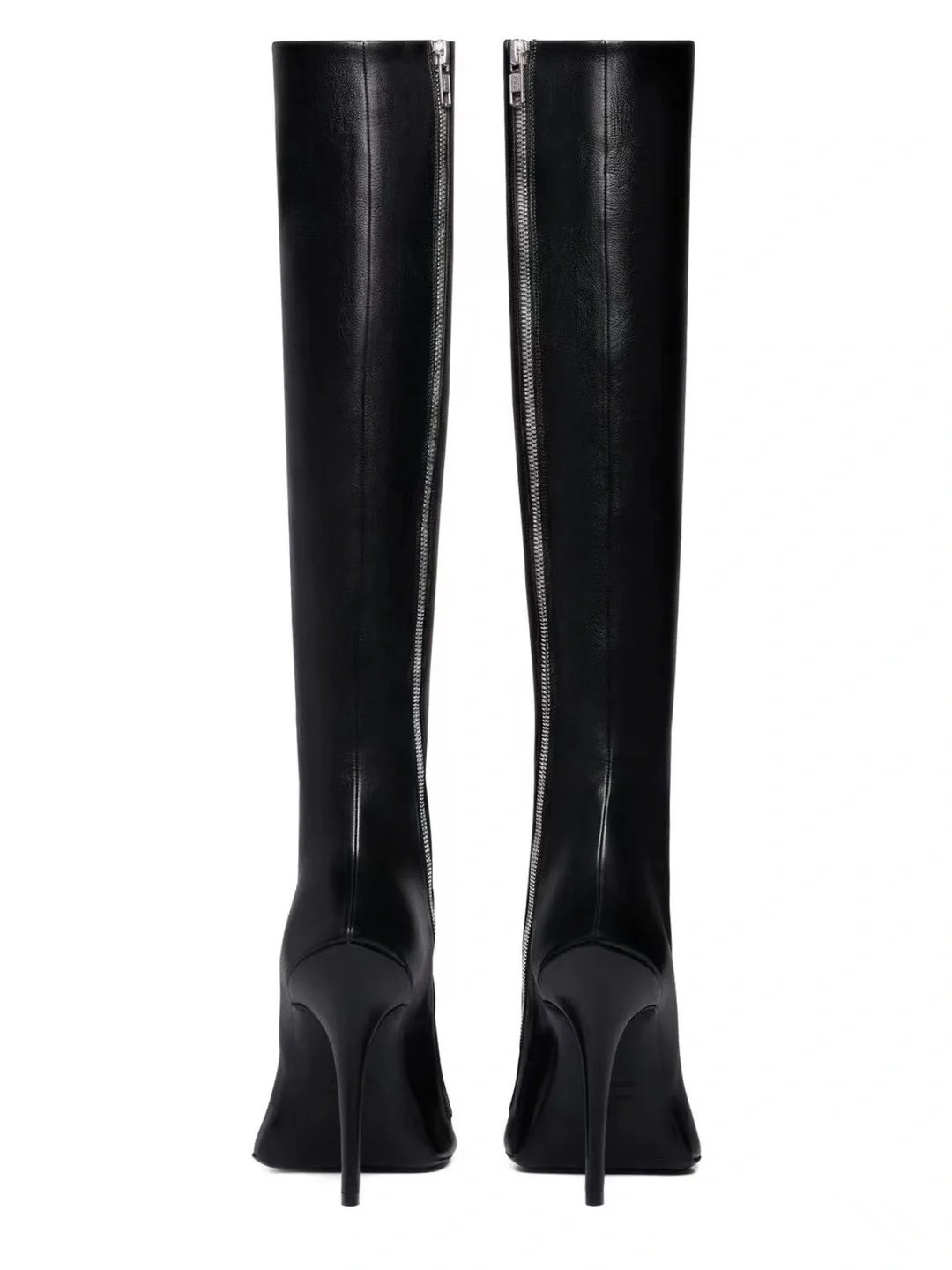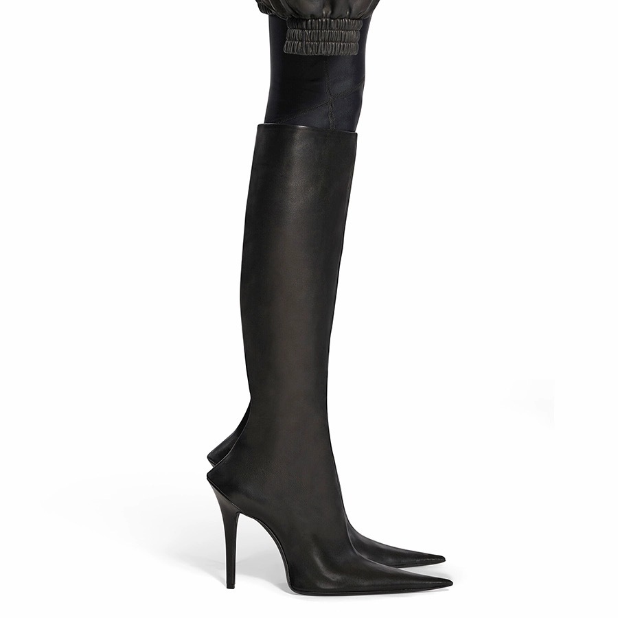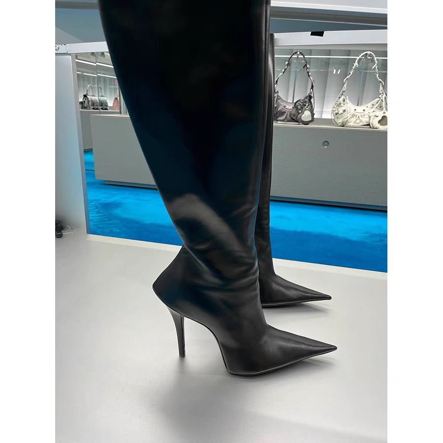 유럽과 미국 새로운 하이힐 뾰족한 특별한 모양의 뒤꿈치 사이드 지퍼 무릎 높이 부츠 외국 무역 국경 플러스 사이즈 여성 부츠스토어 가기