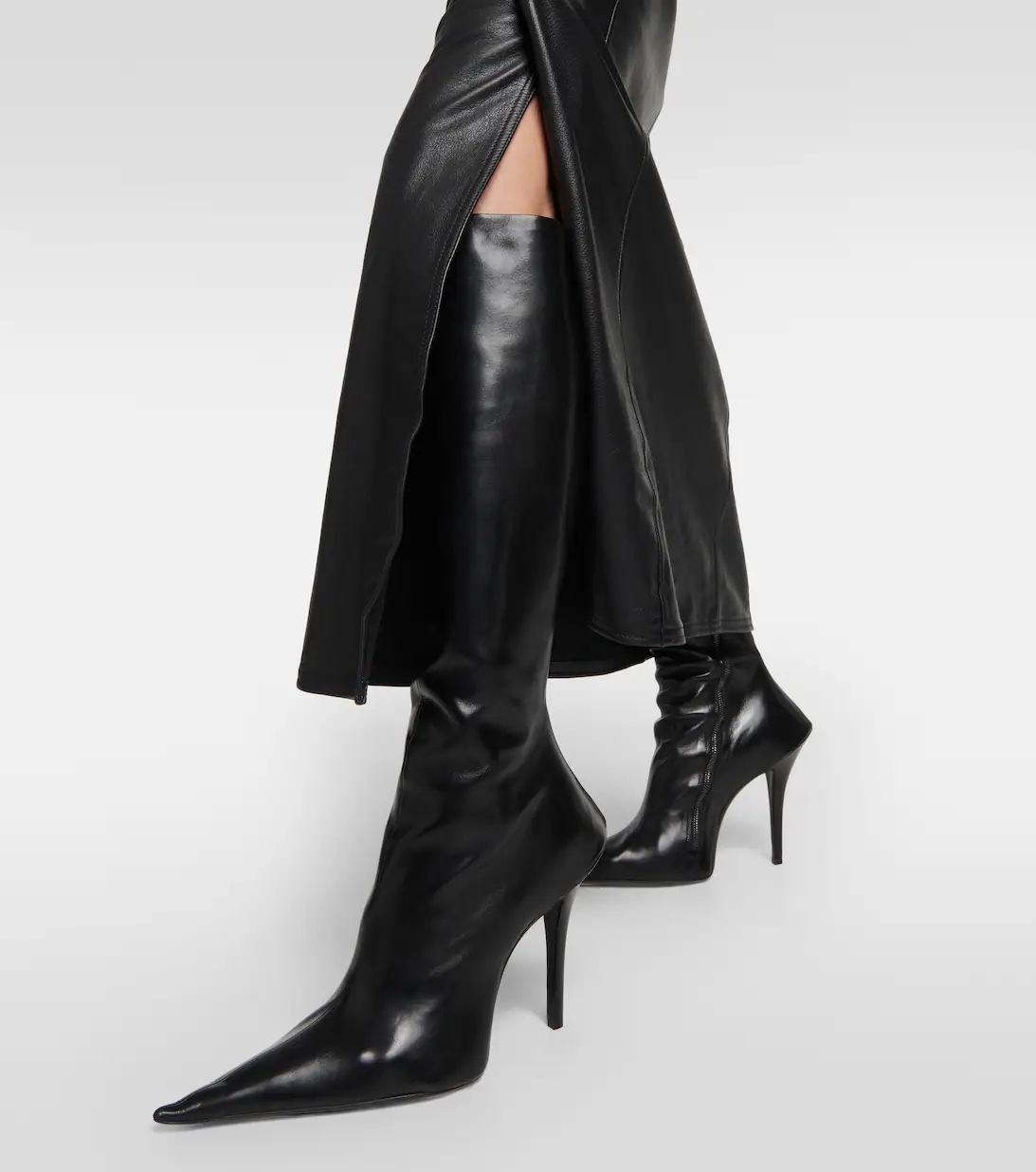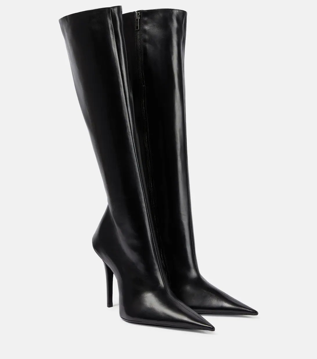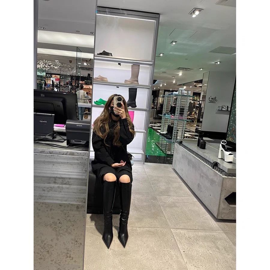 유럽과 미국 새로운 하이힐 뾰족한 특별한 모양의 뒤꿈치 사이드 지퍼 무릎 높이 부츠 외국 무역 국경 플러스 사이즈 여성 부츠스토어 가기