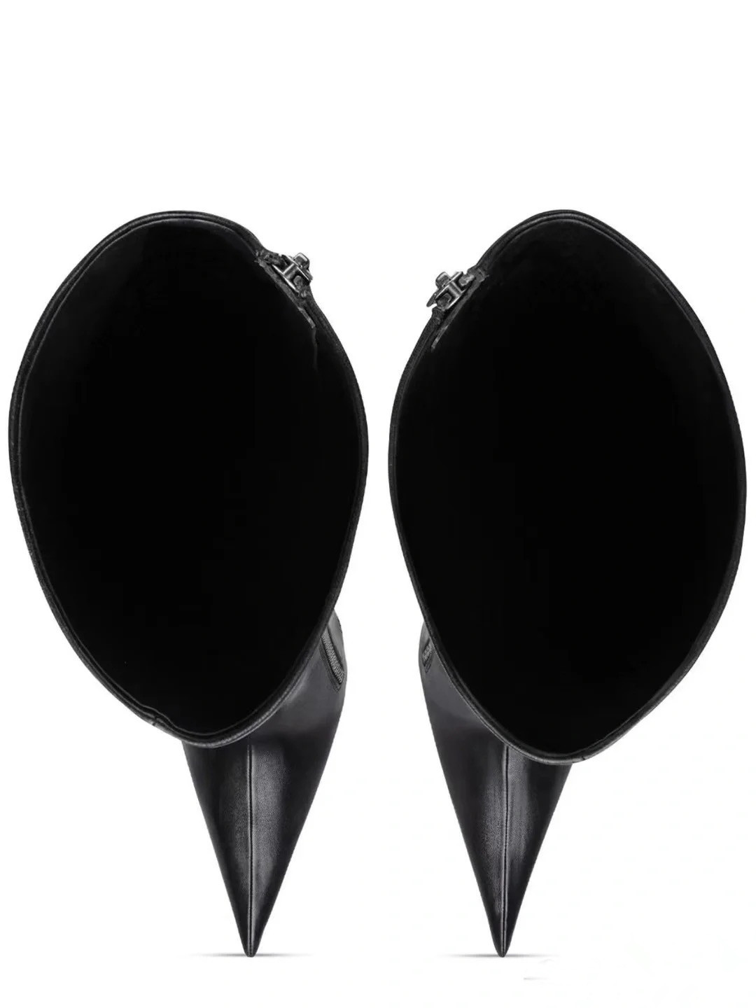 유럽과 미국 새로운 하이힐 뾰족한 특별한 모양의 뒤꿈치 사이드 지퍼 무릎 높이 부츠 외국 무역 국경 플러스 사이즈 여성 부츠