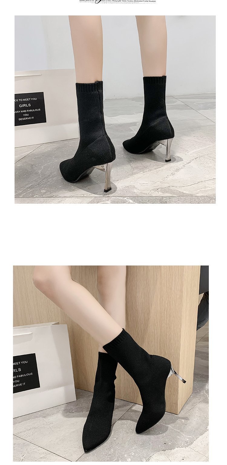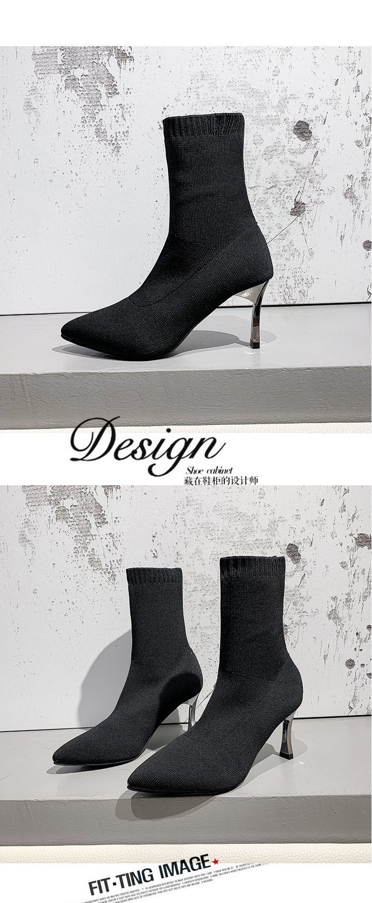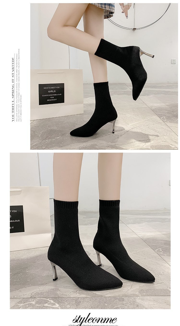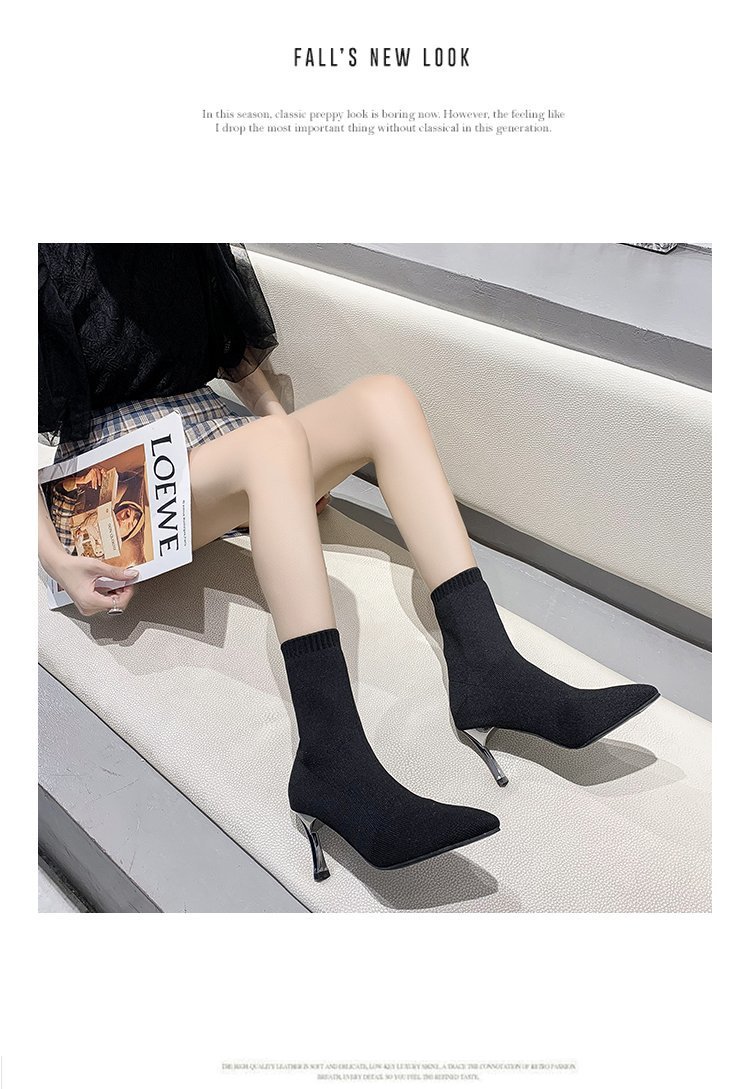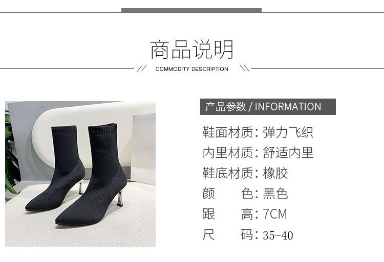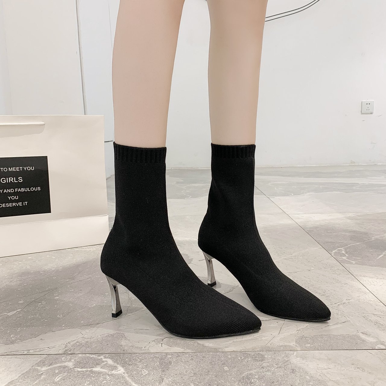 부츠 여성용 2023 신상품 여성용 부츠 겨울 한국 스타일 뾰족한 발가락 비행 짠 소매 짧은 부츠 여성용 얇은 굽 중간 굽 마틴 부츠 여성용스토어 가기