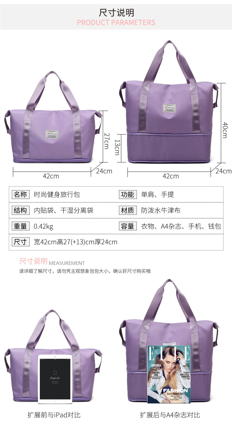 인터넷 연예인 여행 가방 여성용 단거리 여행 대용량 경량 슬리브 트롤리 케이스 보관 다기능 휴대용 피트니스 가방스토어 가기